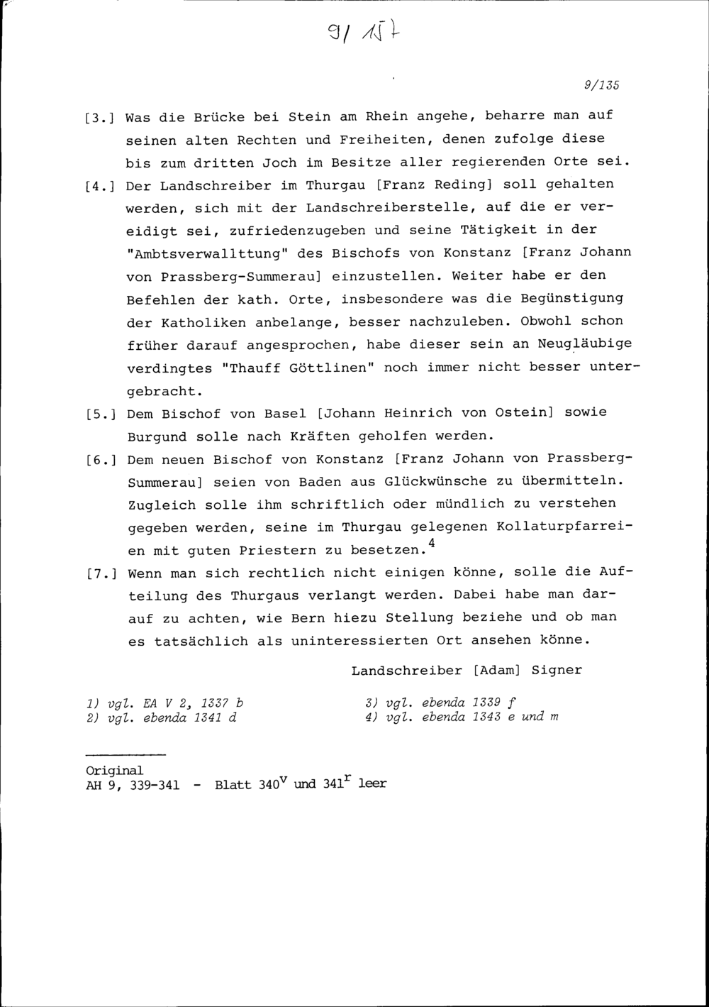 Instruktion von Stadt und Amt Zug auf die Tagsatzung in Baden vom 5. Februar 1645