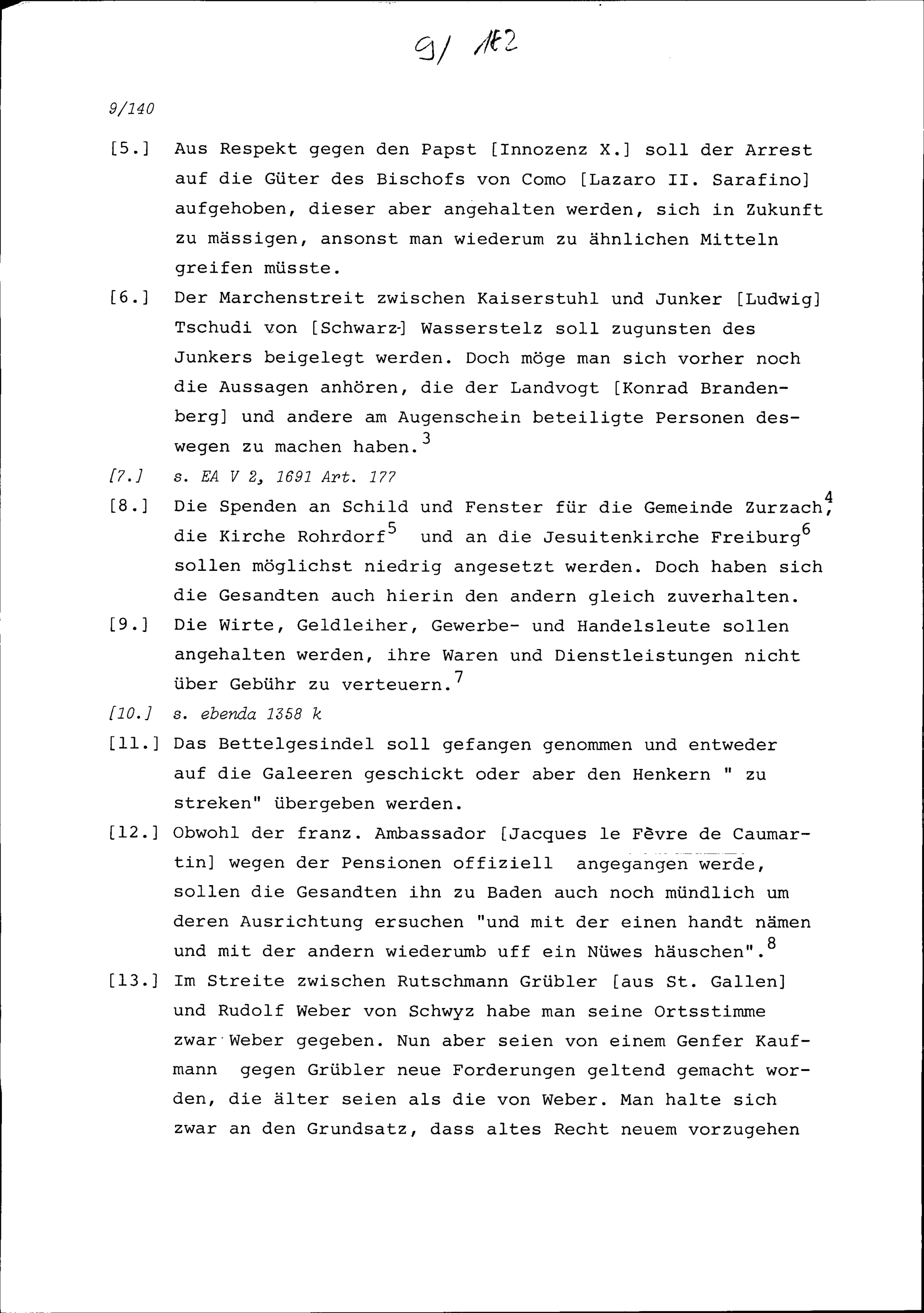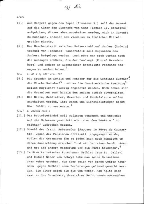 Instruktion von Stadt und Amt Zug auf die Jahrrechnung in Baden vom 2. Juli 1645