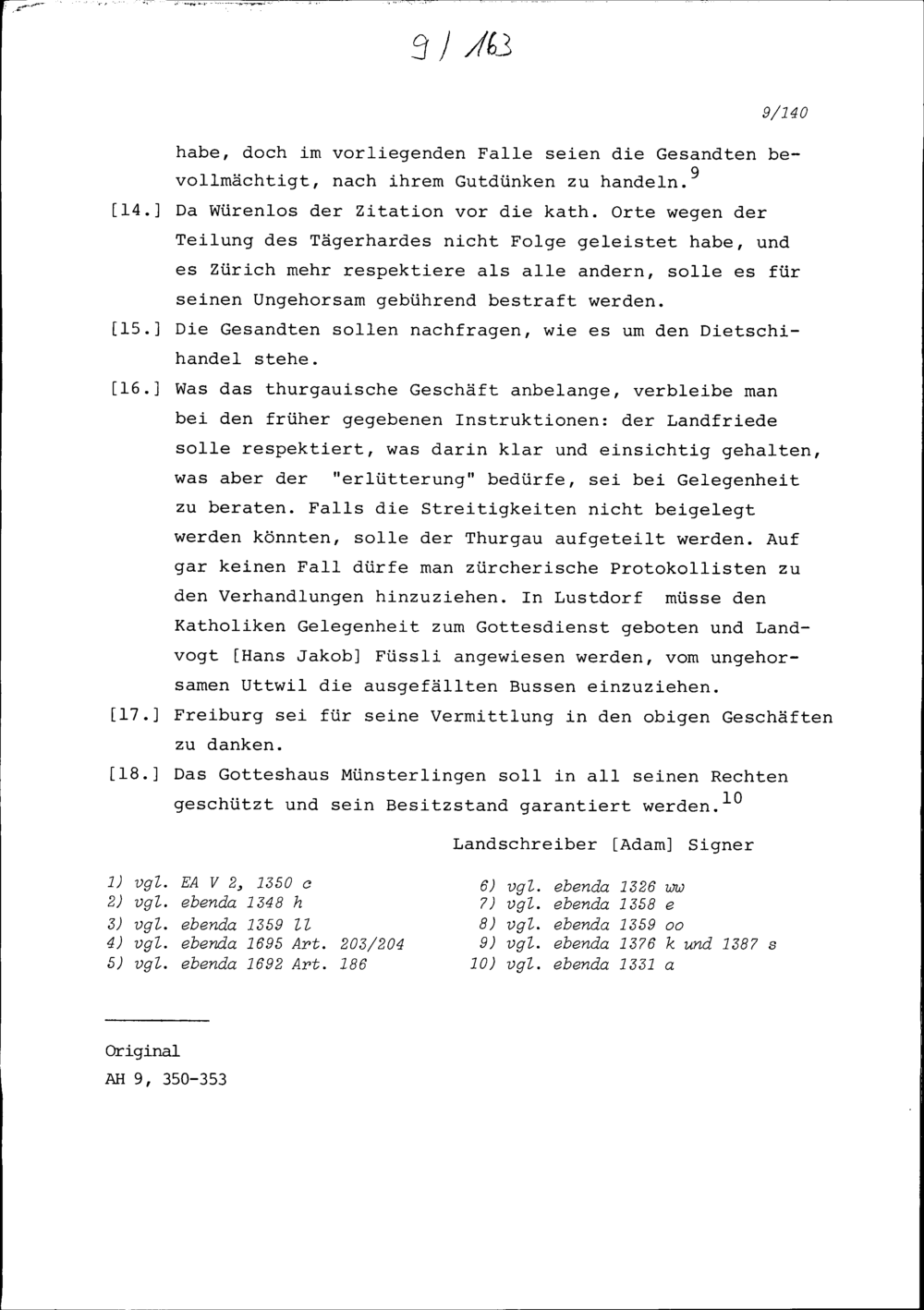Instruktion von Stadt und Amt Zug auf die Jahrrechnung in Baden vom 2. Juli 1645