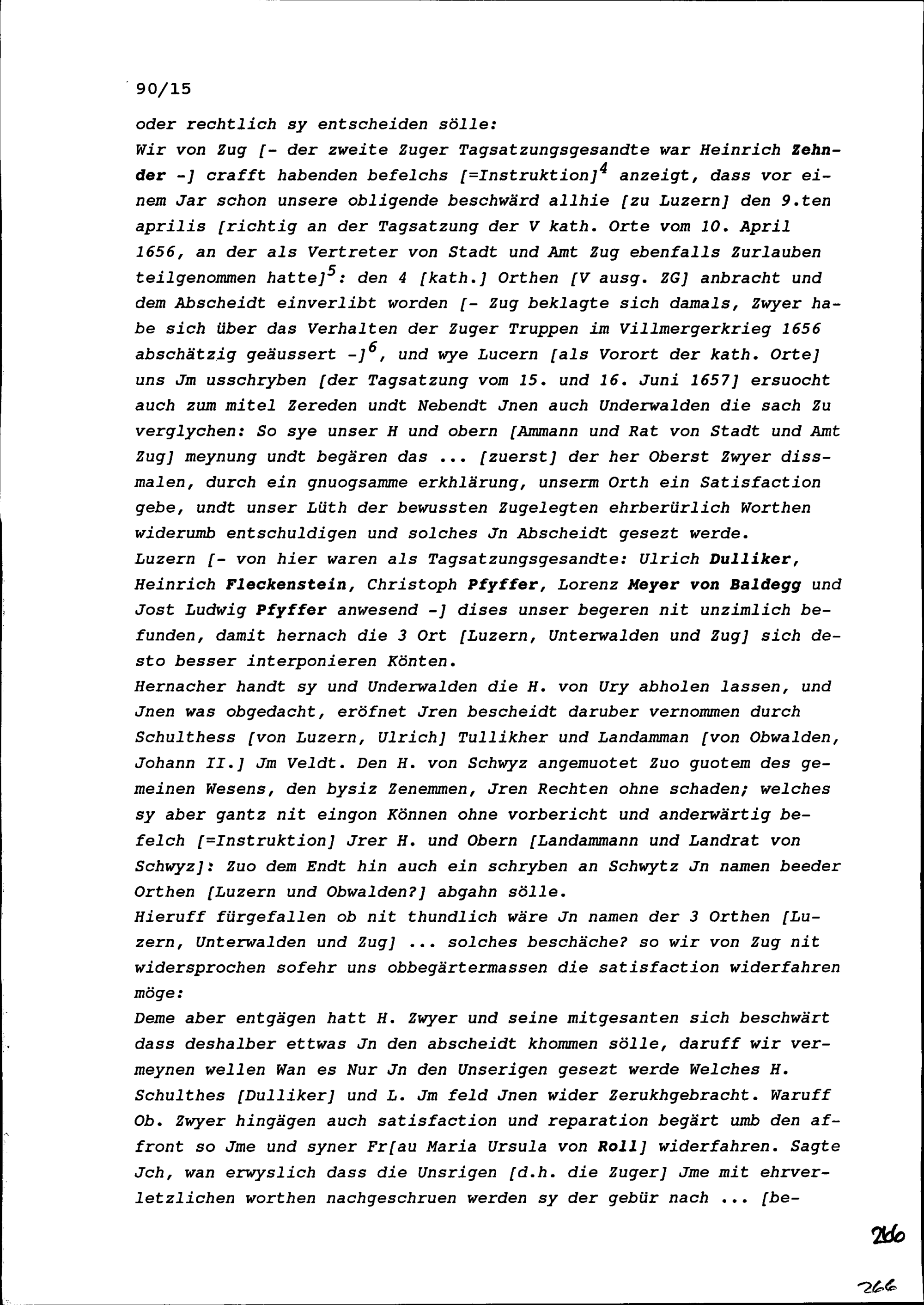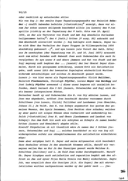 Notiz von Beat II. Zurlauben, Gesandter von Stadt und Amt Zug, über die Tagsatzung der Sieben Katholischen Orte vom 15. und 16. Juni 1657 in Luzern