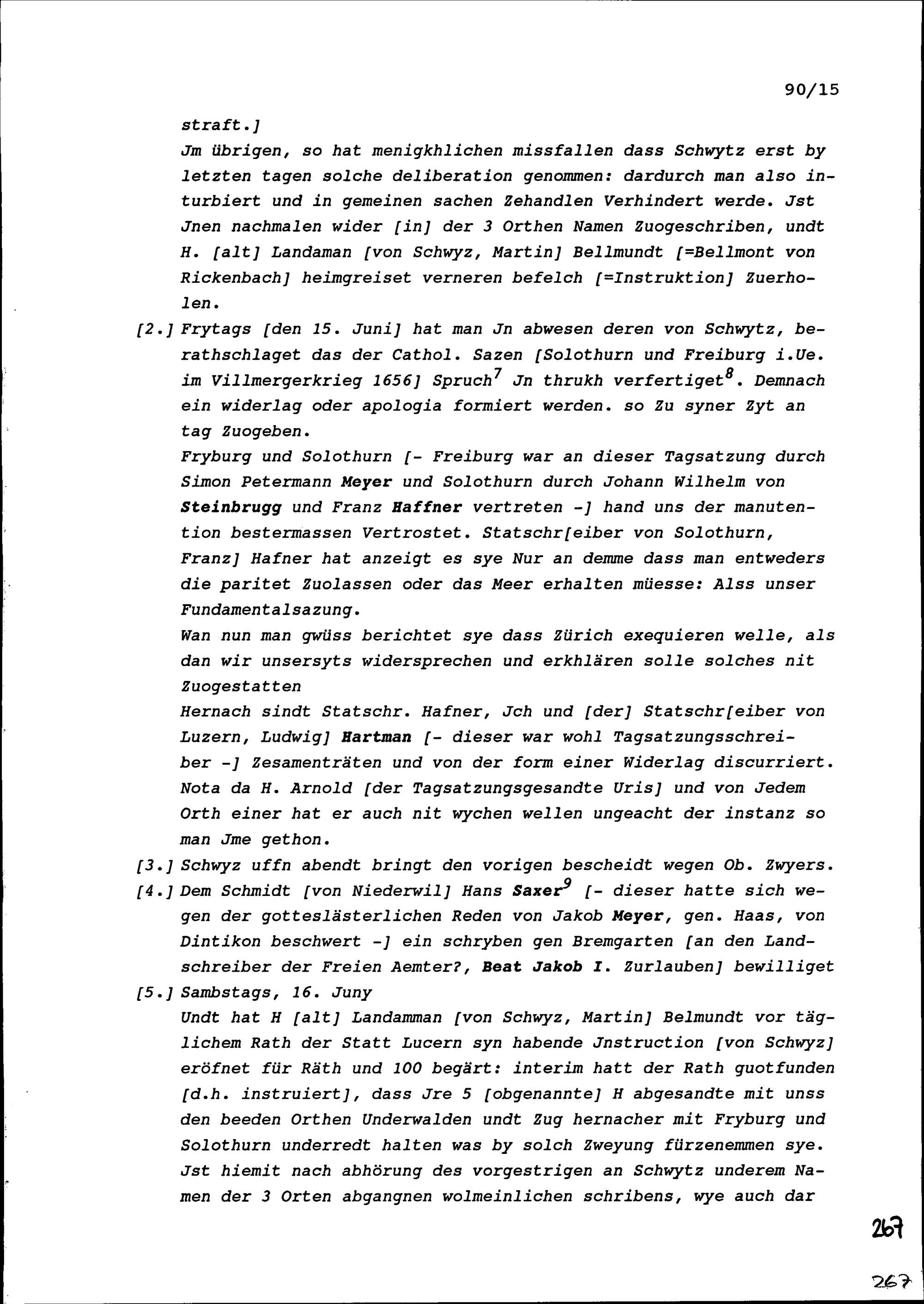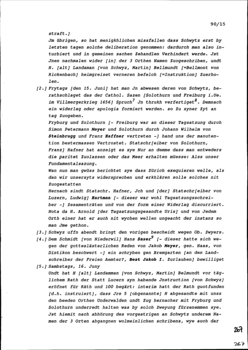 Notiz von Beat II. Zurlauben, Gesandter von Stadt und Amt Zug, über die Tagsatzung der Sieben Katholischen Orte vom 15. und 16. Juni 1657 in Luzern