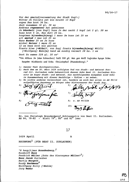 Rechnung für Beat II. Zurlauben