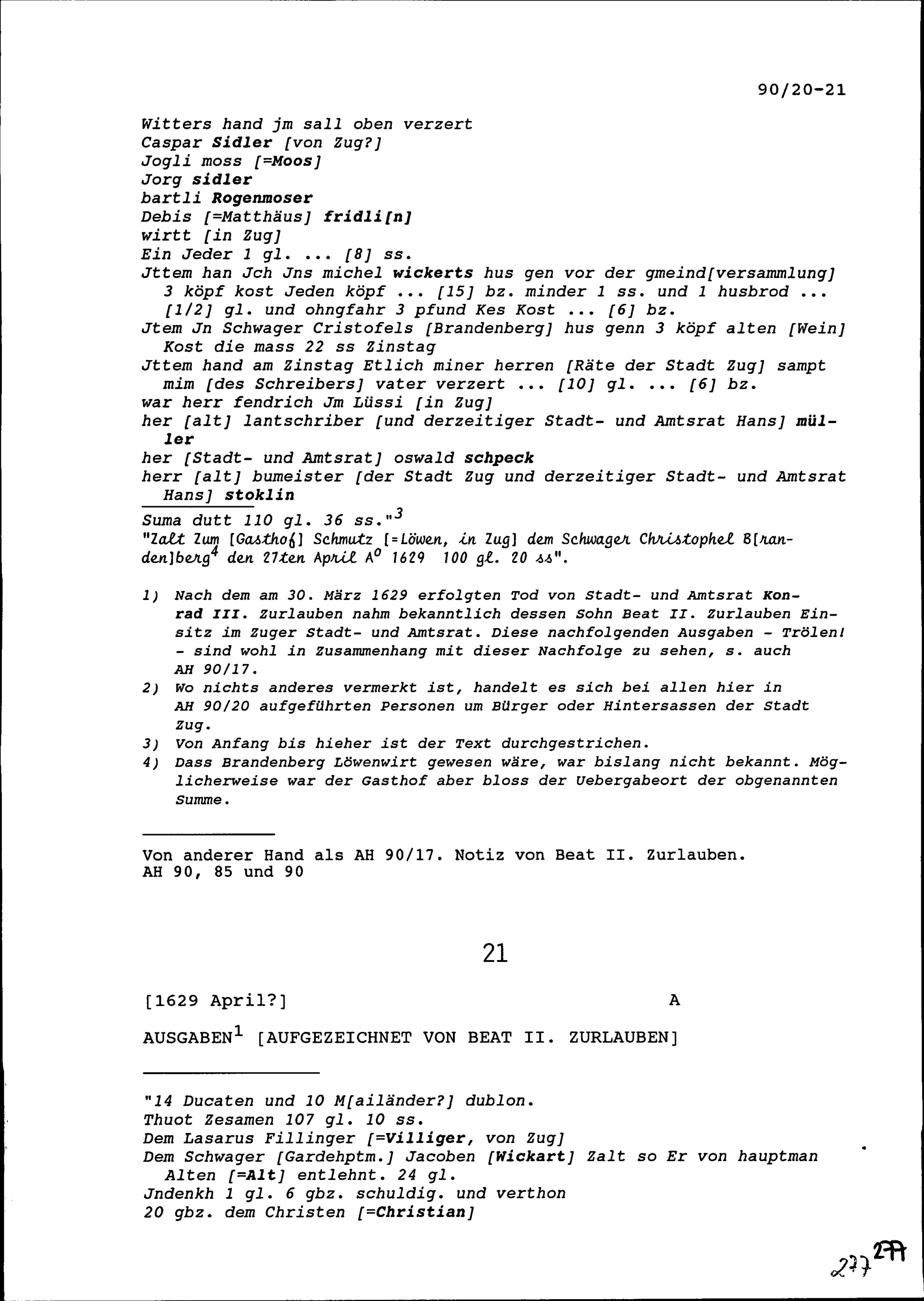 Ausgaben aufgezeichnet von Beat II. Zurlauben