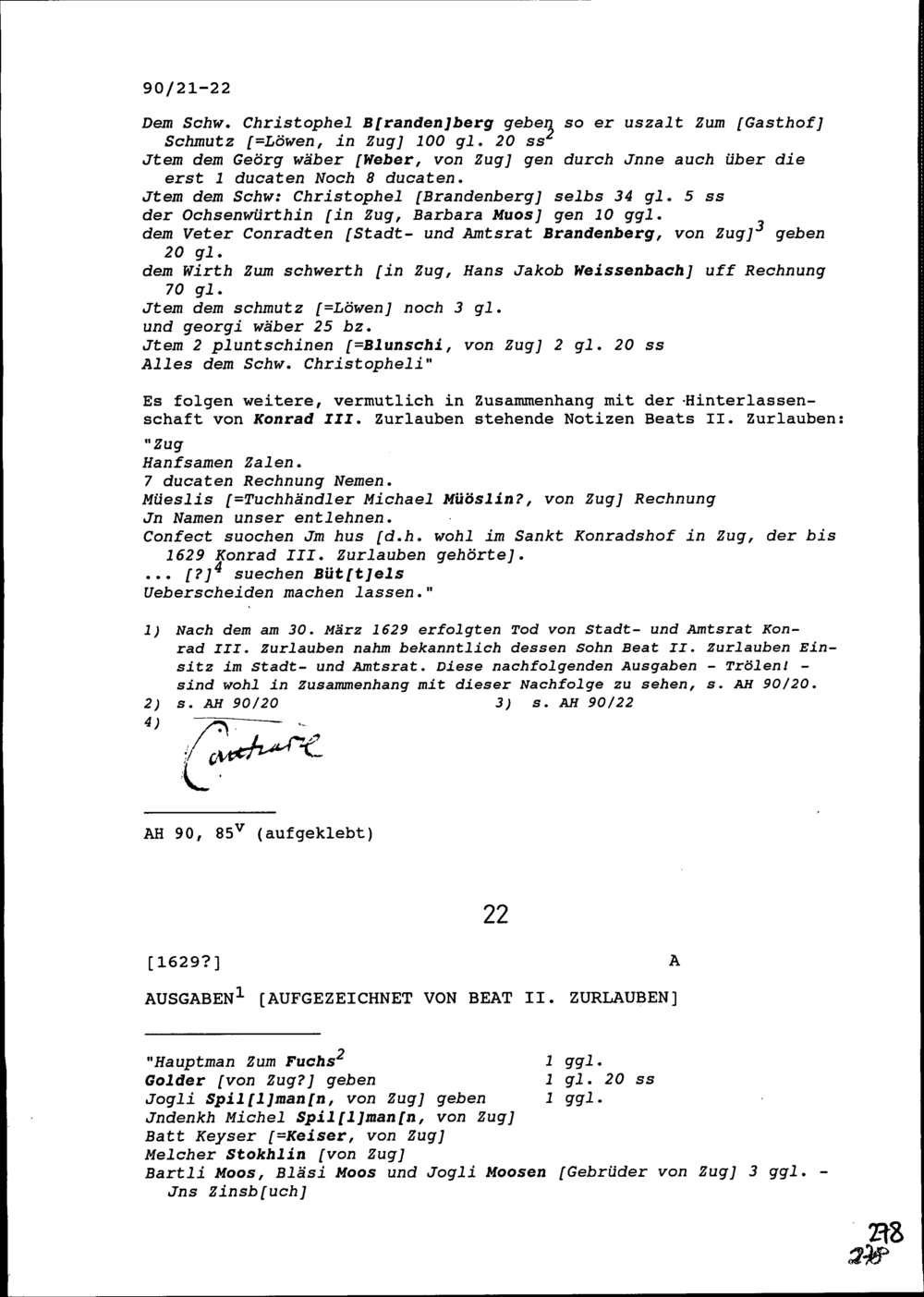 Ausgaben aufgezeichnet von Beat II. Zurlauben