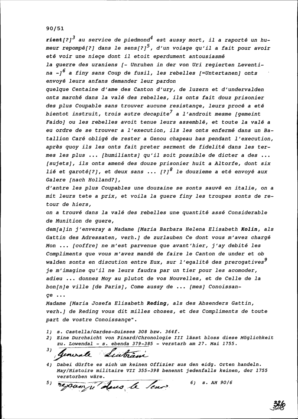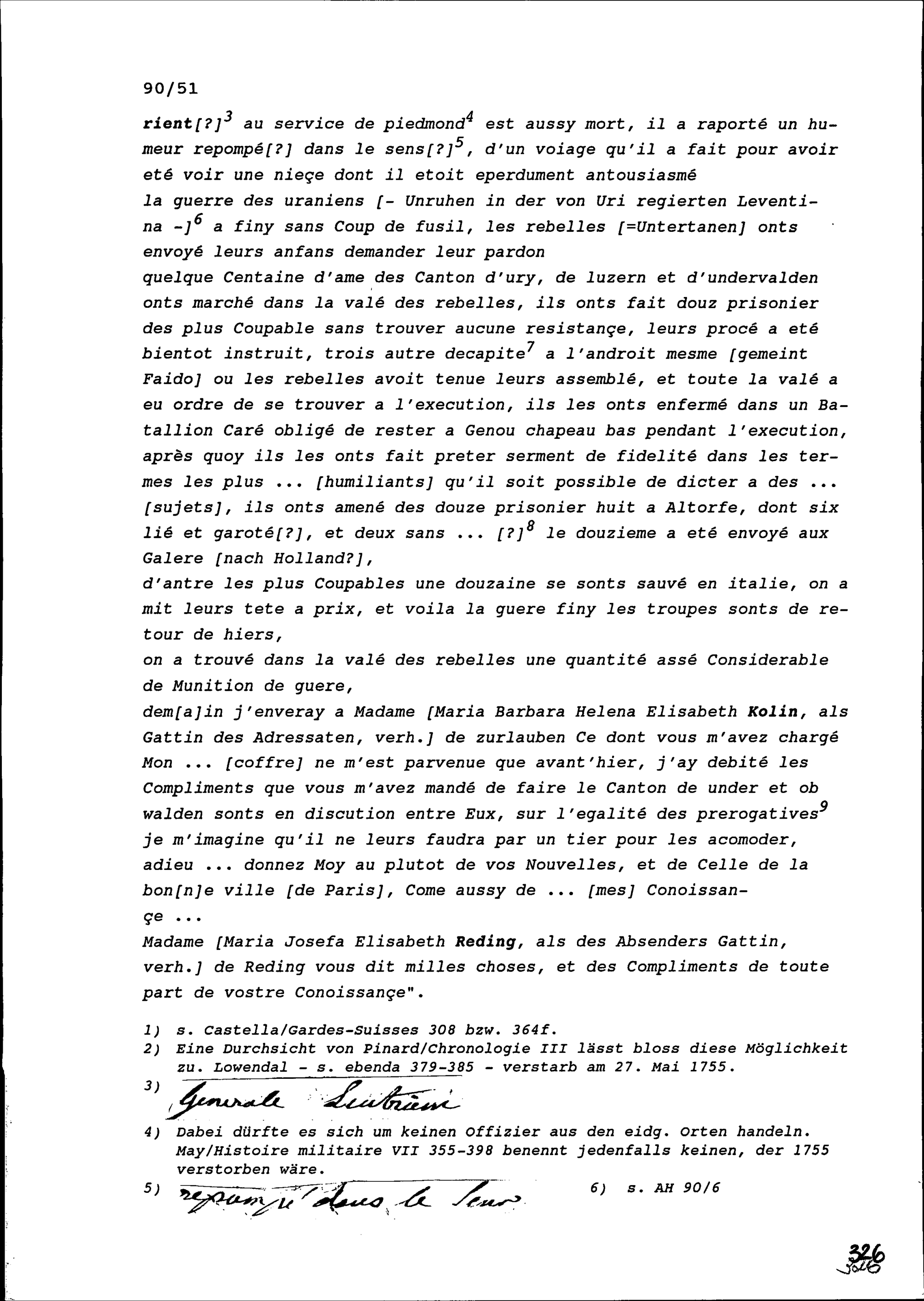 Schreiben von Josef Nazar Reding von Biberegg, Gardehauptmann und Feldmarschall, an Beat Fidel Zurlauben, Gardehauptmann und Brigadier