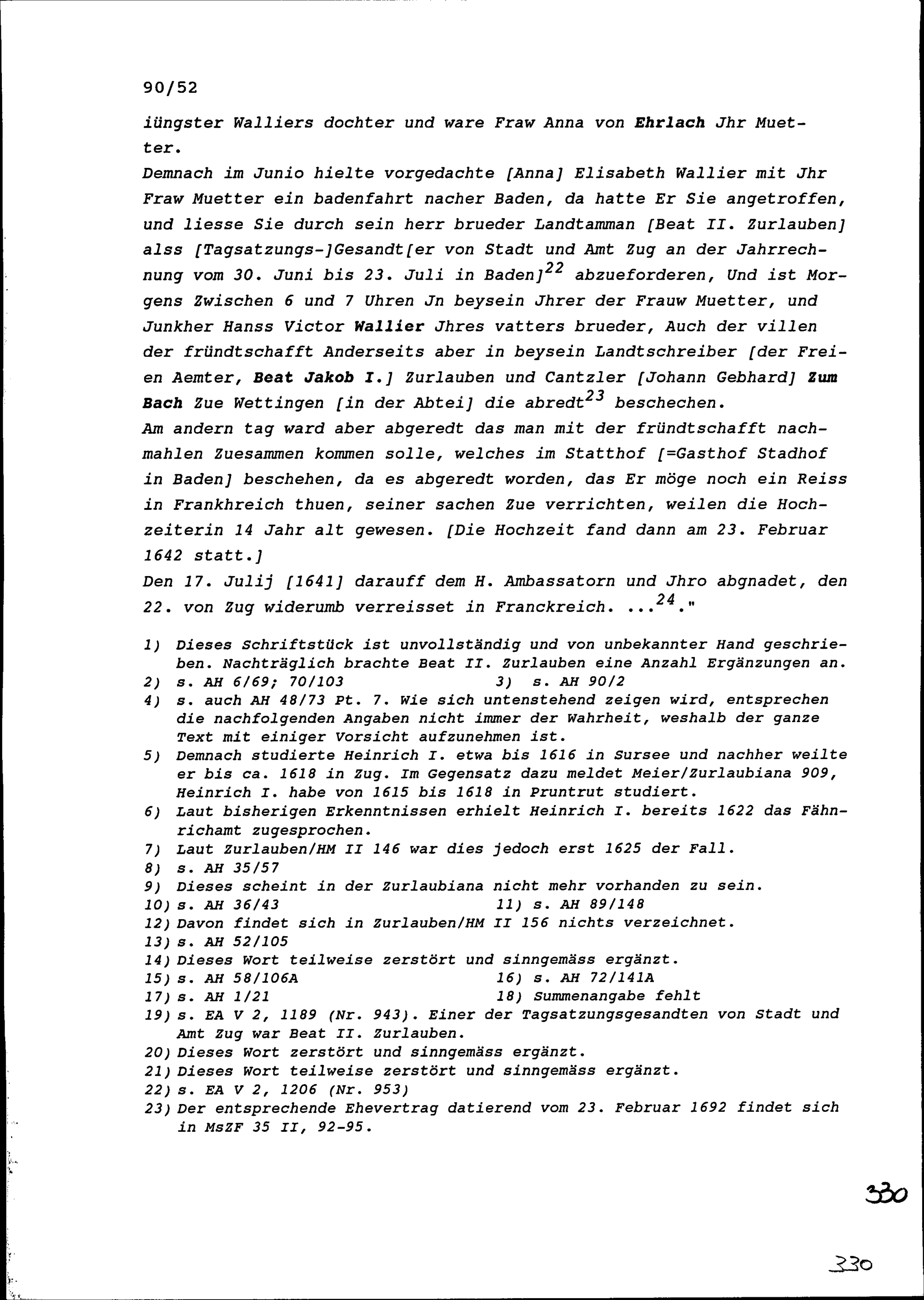 Biographien verschiedener Personen der Familie Zurlauben, mit Angaben insbesondere über Heinrich I. Zurlauben