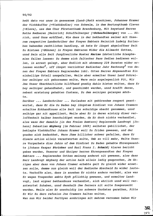 Ortsstimme Uris bezüglich des Streits zwischen Heinrich Ludwig Zurlauben, Landschreiber der Freien Ämter, und Johann Kramer