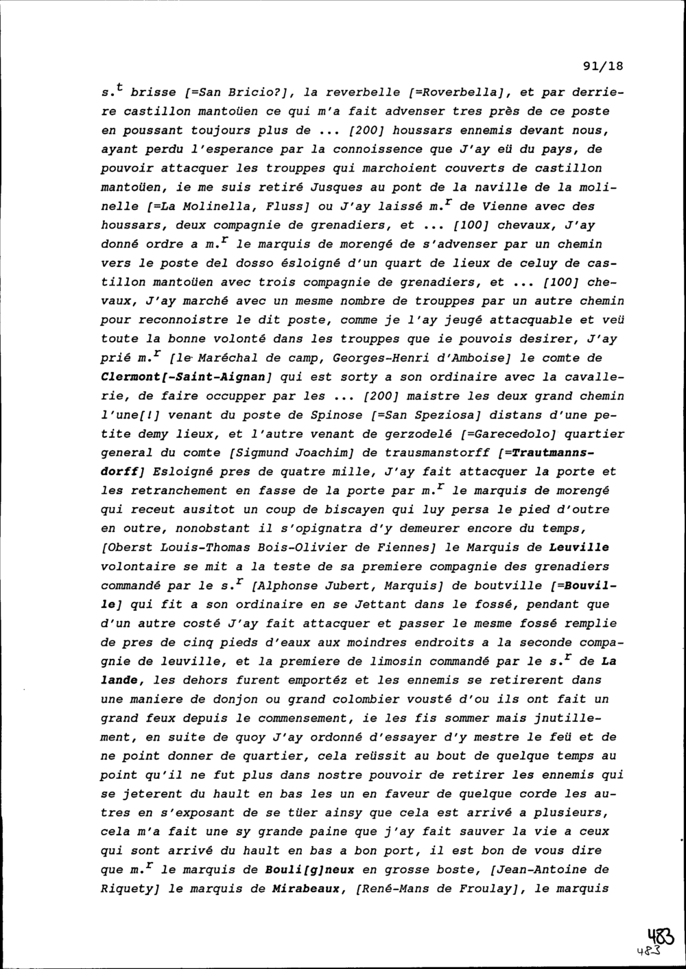 Bericht über einen Angriff unter Beat Jakob Zurlauben, Generalleutnant, Mantua, aufgezeichnet von Beat Jakob II. Zurlauben
