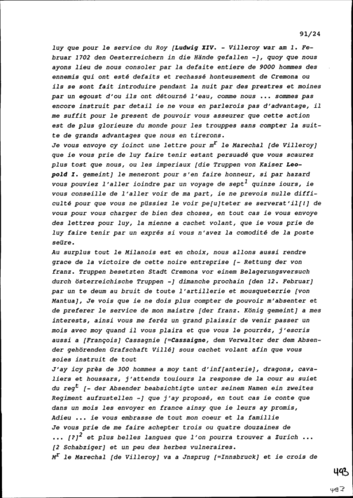 Schreiben von Beat Jakob Zurlauben, Feldmarschall, an Beat Jakob II. Zurlauben, Hauptmann