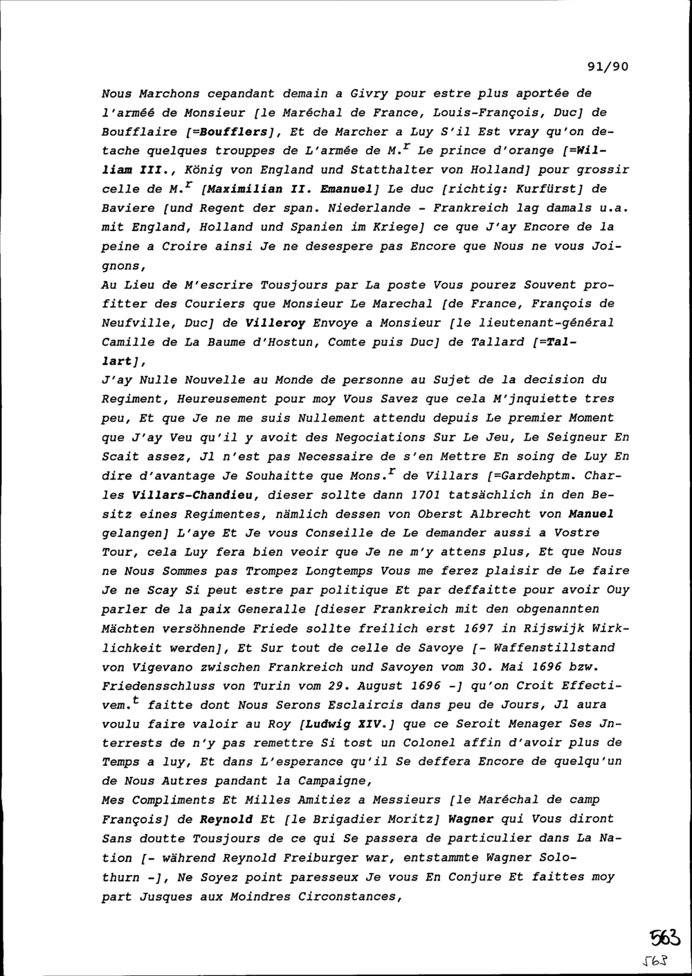 Schreiben von Unbekannt an Beat Jakob Zurlauben, französischer Feldmarschall