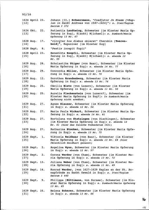 Auszug Sterberegistern betreffend geistliche Personen, gestorben zwischen 1611 und 1755, aufgezeichnet von Beat Fidel Zurlauben