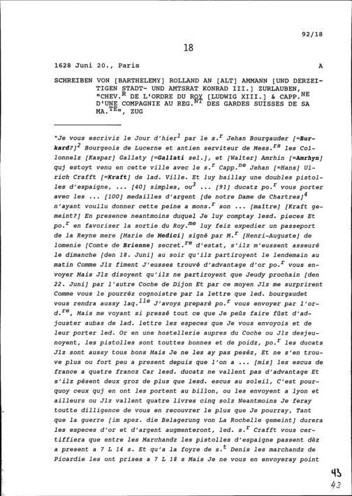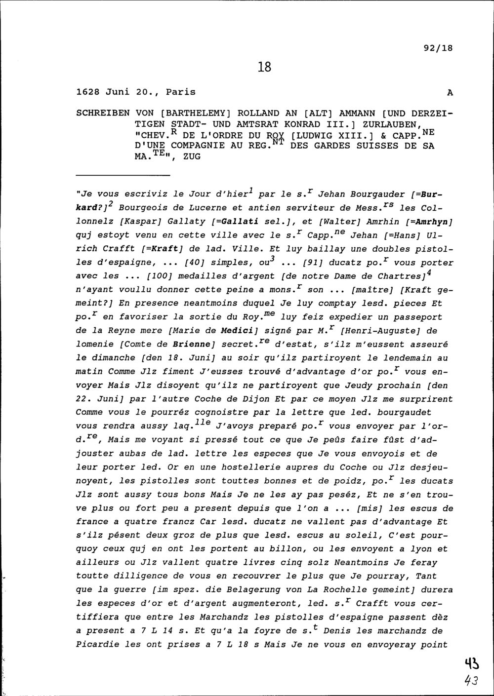 Schreiben von Barthélémy Rolland an Konrad III. Zurlauben, Hauptmann, Altammann und...