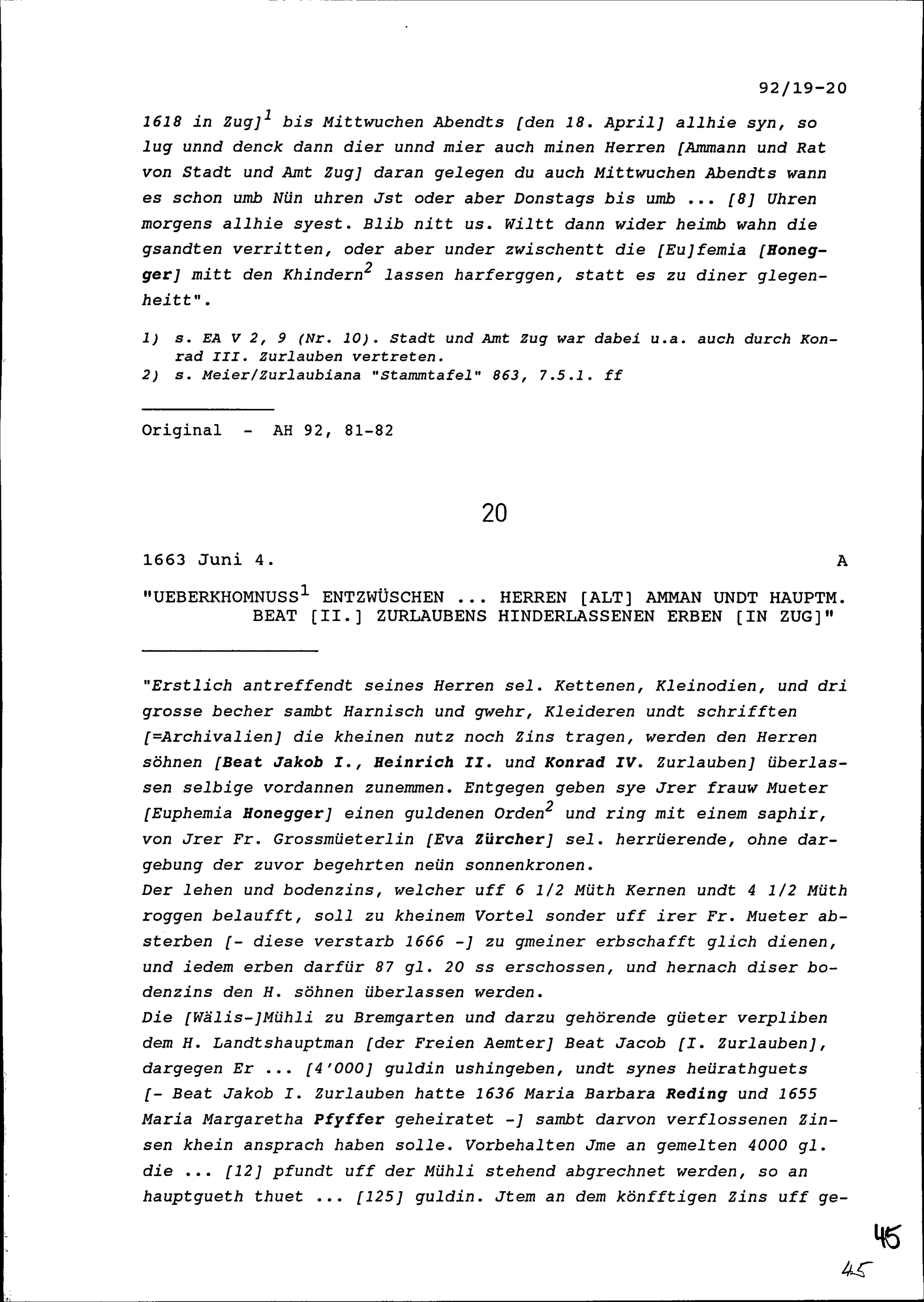 Vereinbarung unter den Erben von Beat II. Zurlauben, Altammann und Hauptmann