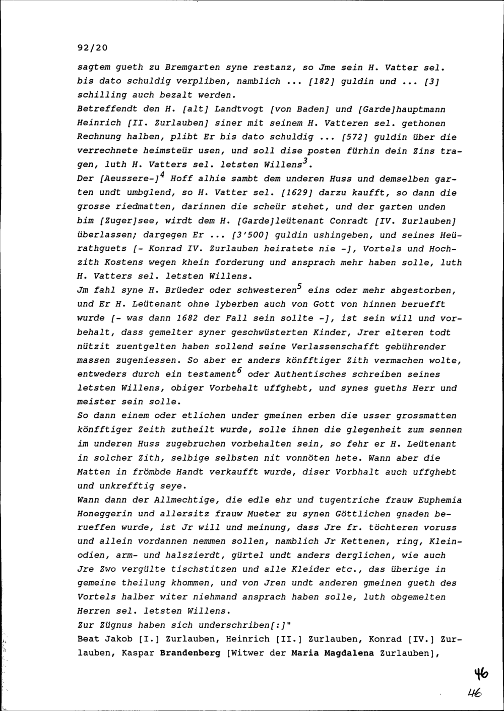 Schreiben von Bernhard Keller, Abt von Wettingen, an Beat II. Zurlauben, Hauptmann und Stadt- und Amtrat, Zug