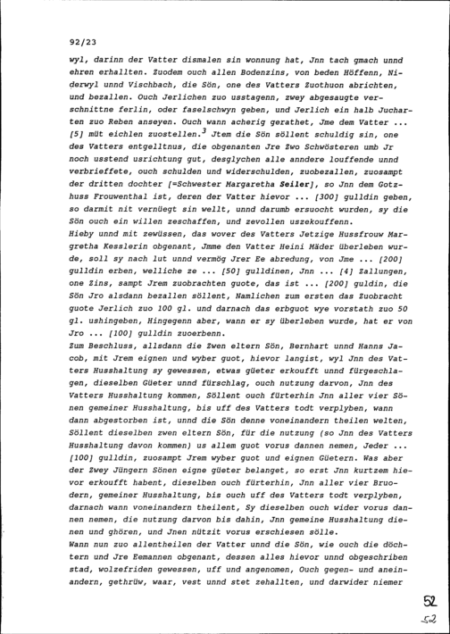 Übereinkunft zwischen Heinrich Seiler genannt Mäder von Fischbach, jetzt in Niederwil, und seinen Kindern