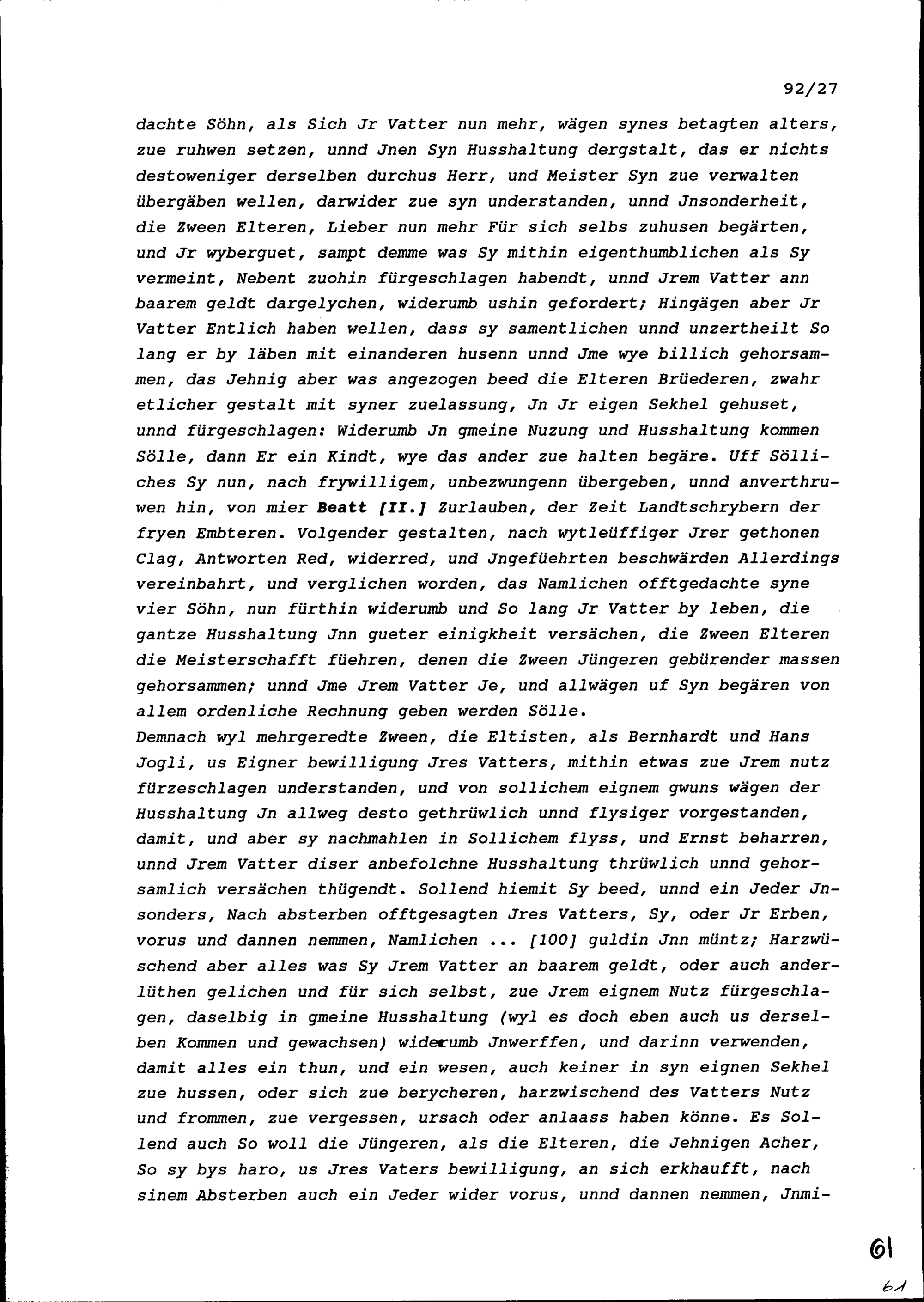 Übereinkunft zwischen Heinrich Seiler genannt Mäder von Fischbach, jetzt in Niederwil und seinen Kindern