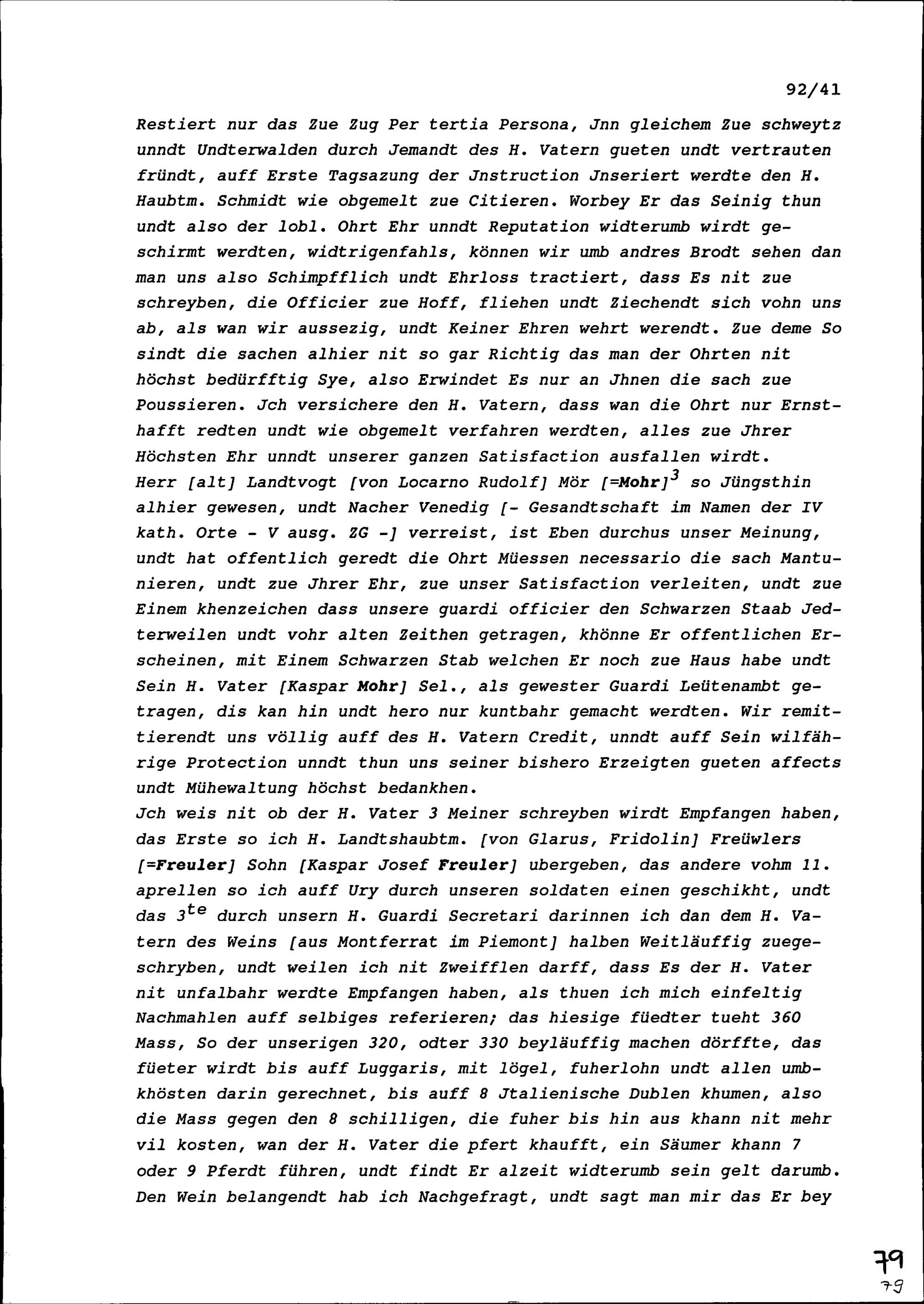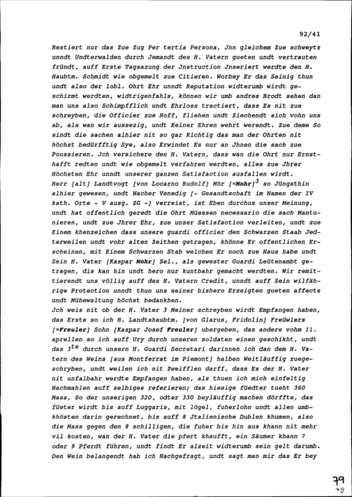 Schreiben von Beat Kaspar Zurlauben, Gardeleutnant, an Beat Jakob I. Zurlauben, Statthalter Zug