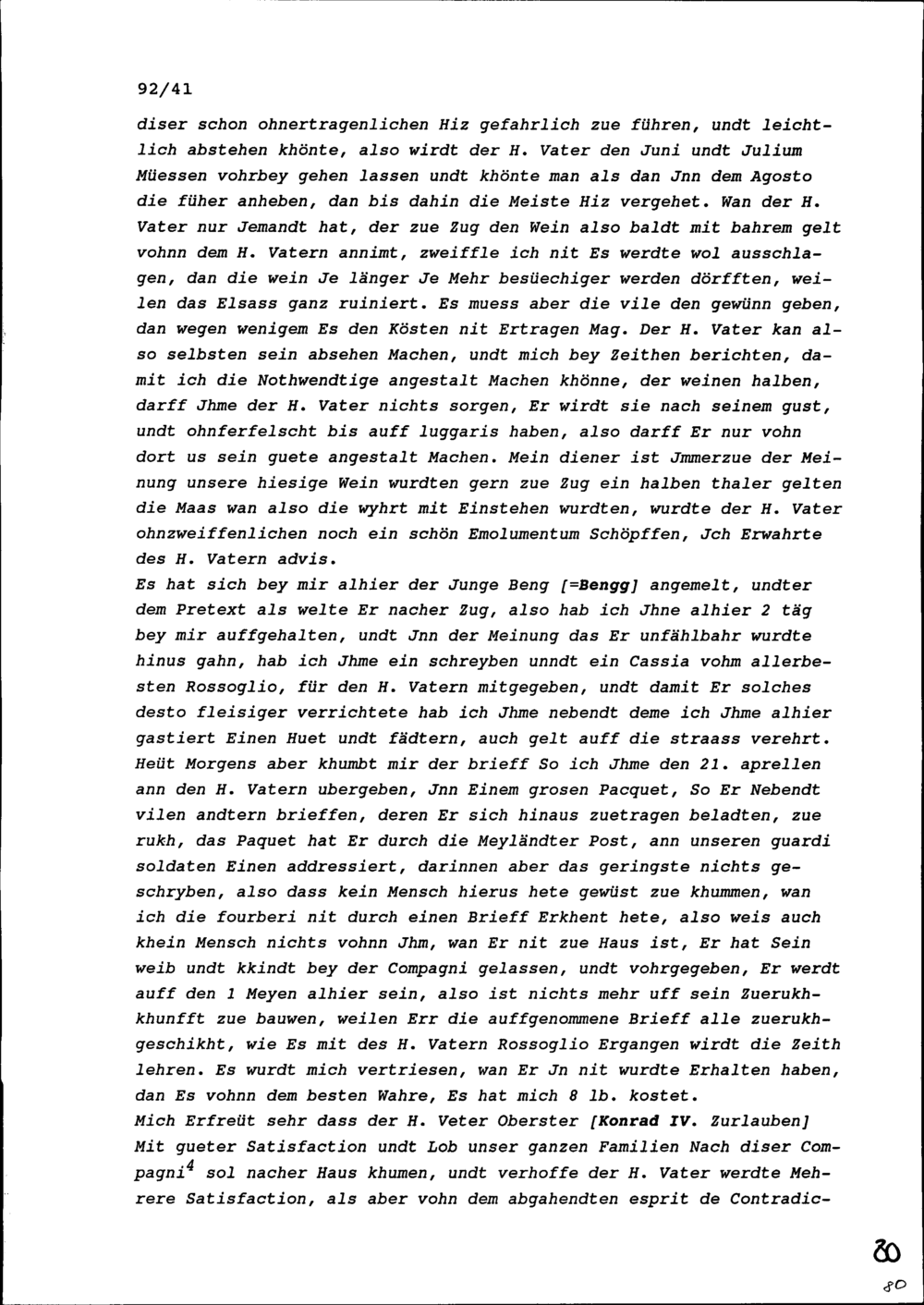 Schreiben von Beat Kaspar Zurlauben, Gardeleutnant, an Beat Jakob I. Zurlauben, Statthalter Zug