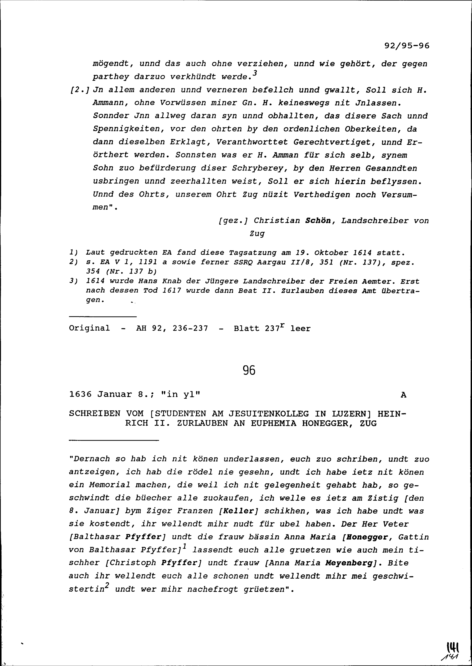 Schreiben von Heinrich II. Zurlauben, Student am Jesuitenkolleg in Luzern, an Euphemia Honegger, Zug