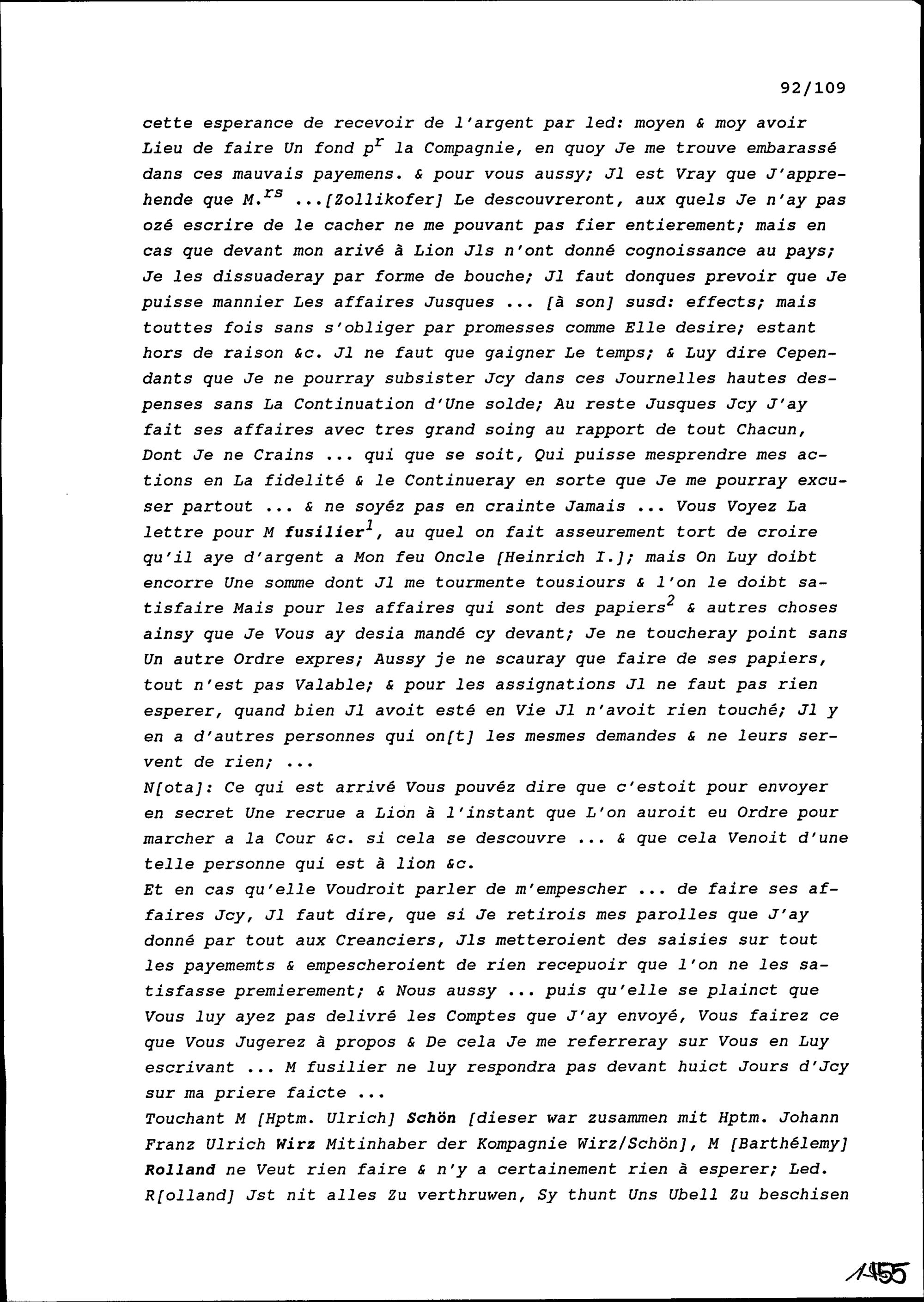 Schreiben von Heinrich II. Zurlauben, Gardehauptmann, an Beat II. Zurlauben, Altammann...