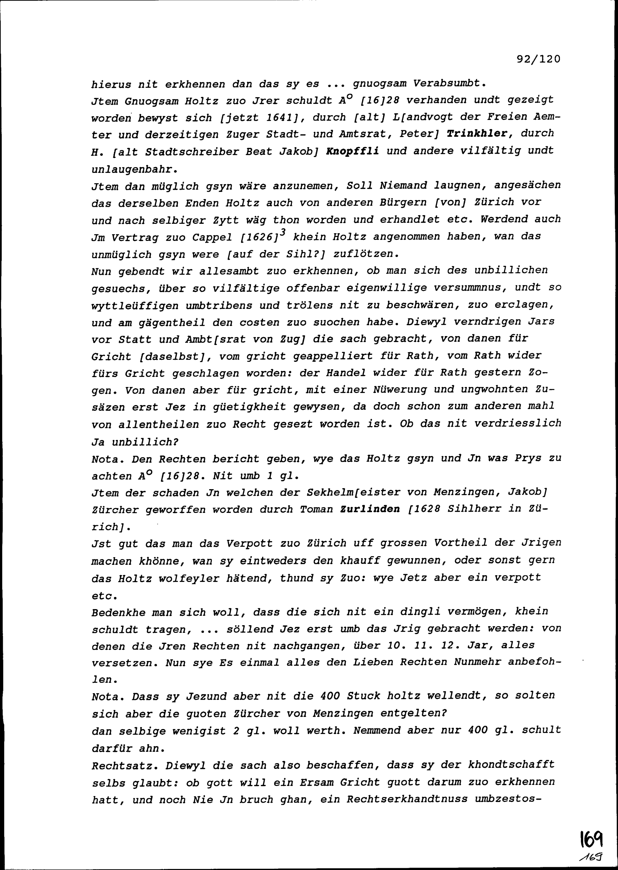 Notiz von Beat II. Zurlauben, Ammann Zug, zum Streit zwischen den Erben von Hans Peter Steiner, von Zürich, einerseits und Jakob Zürcher, von Menzingen, anderseits