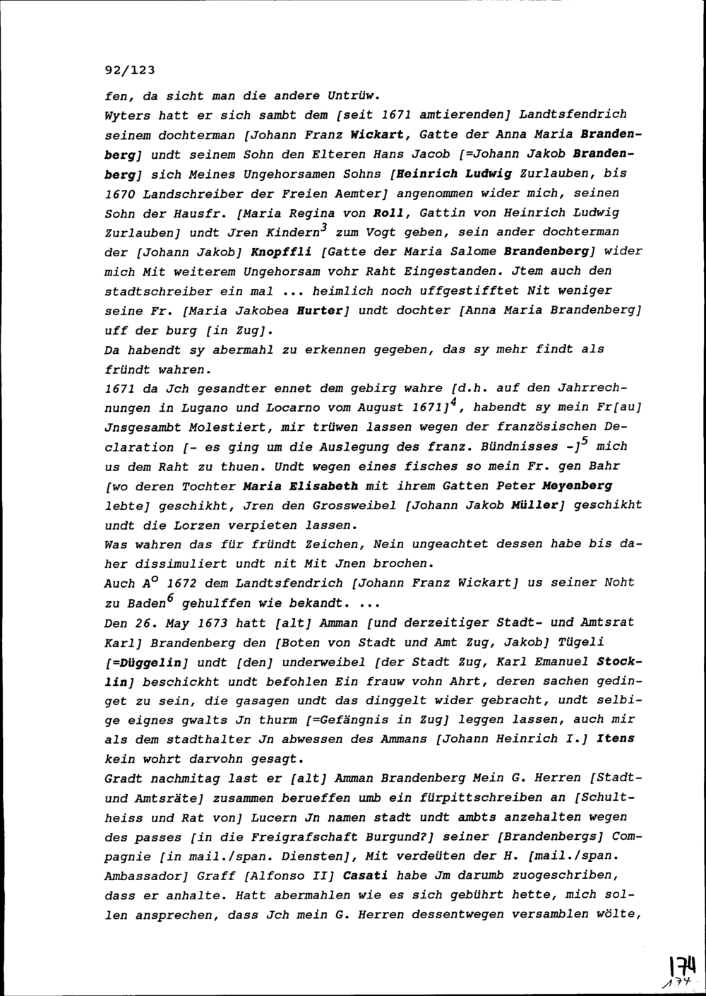 Bericht von Beat Jakob I. Zurlauben, Statthalter Zug, wegen Karl Brandenberg, Altammann, und seiner Leuten