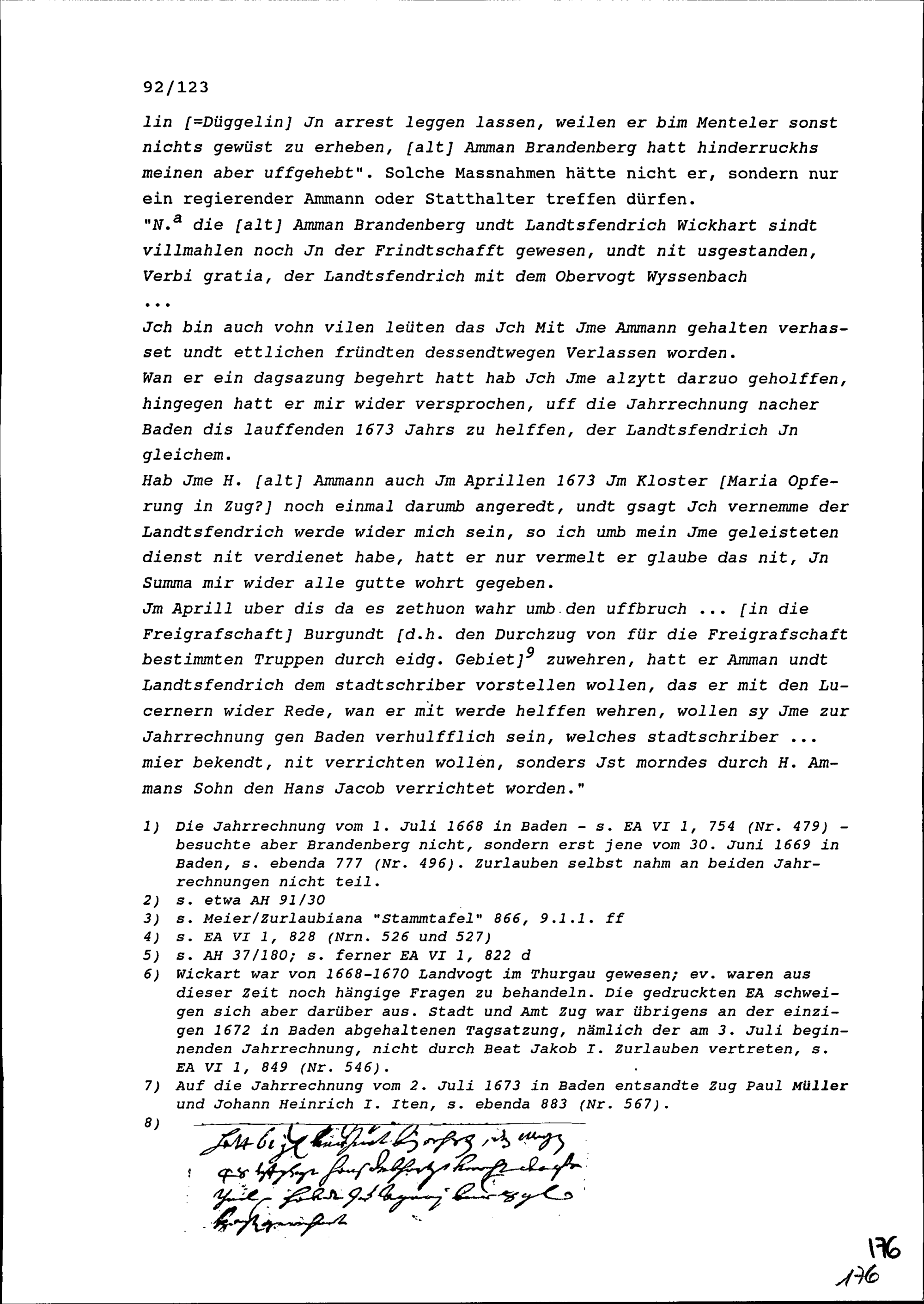 Bericht von Beat Jakob I. Zurlauben, Statthalter Zug, wegen Karl Brandenberg, Altammann,...