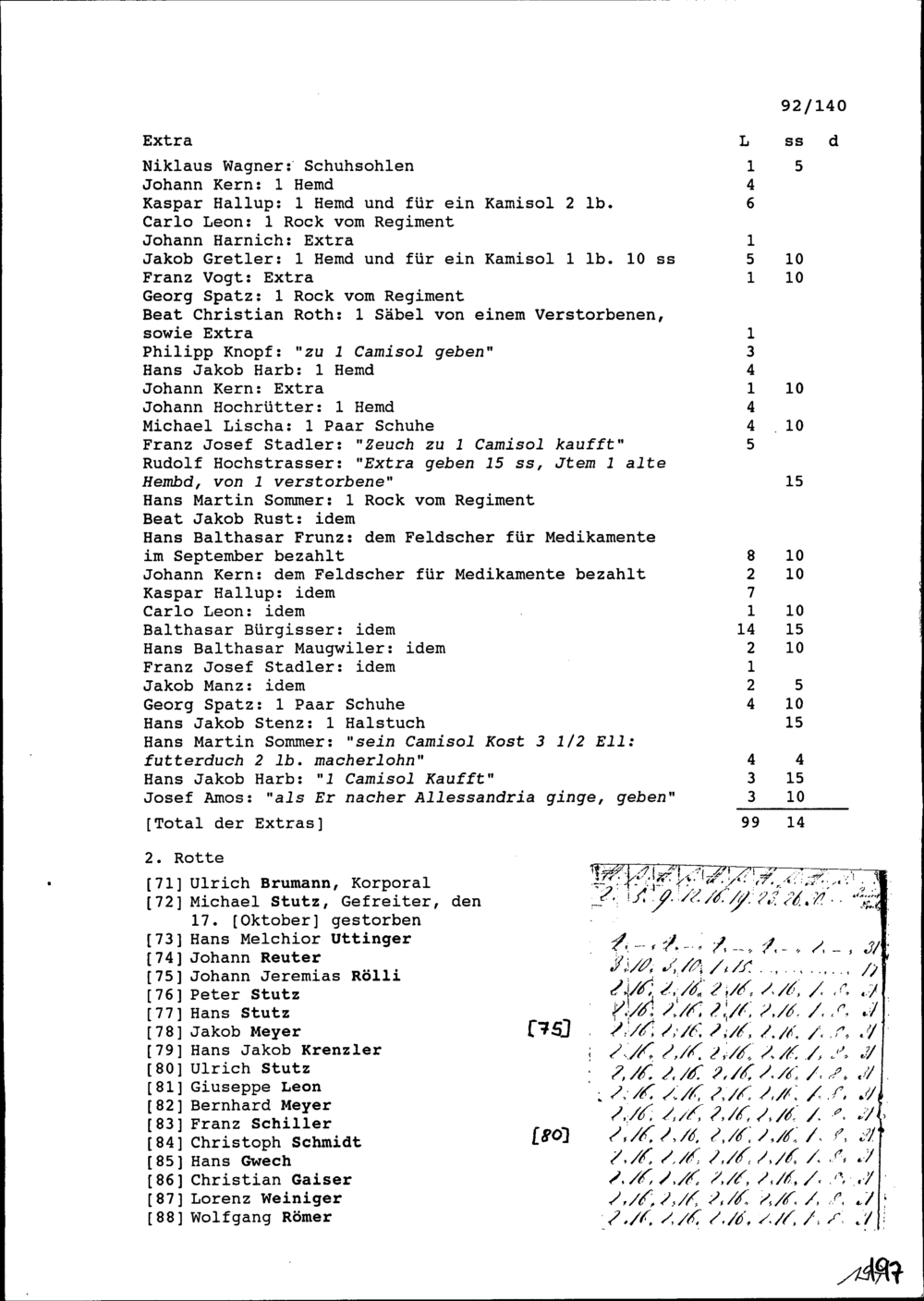 Mannschaftsrodel der Kompanie von Beat Jakob II. Zurlauben, Ammann Zug und Hauptmann, und von Christoph I. Andermatt, Altammann und Hauptmann, im Regiment Amrhyn in spanischen Diensten