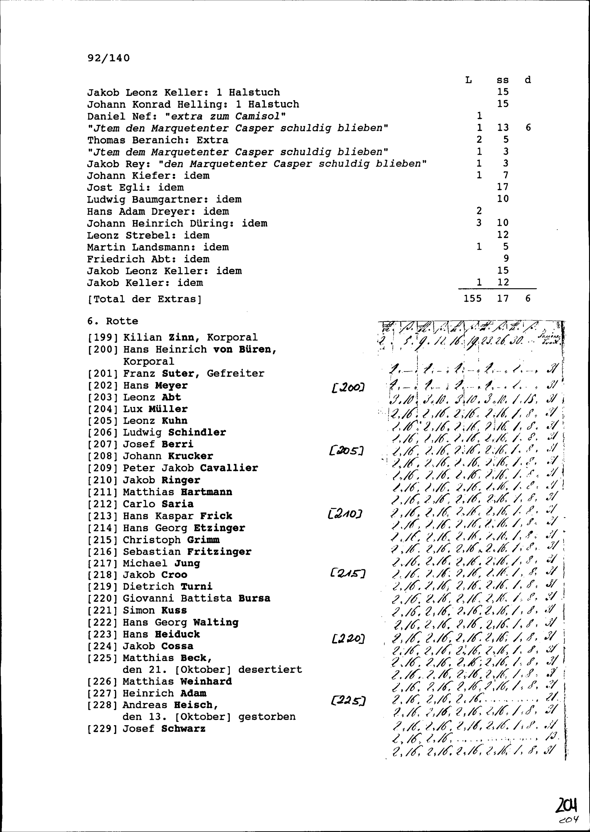 Mannschaftsrodel der Kompanie von Beat Jakob II. Zurlauben, Ammann Zug und Hauptmann,...