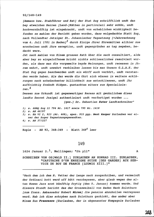 Schreiben von Oswald II. Zurlauben an Konrad III. Zurlauben, Hauptmann
