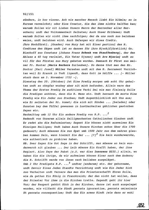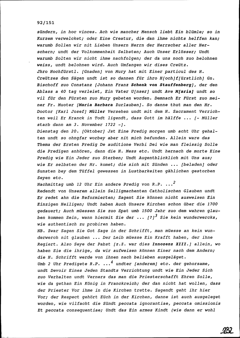 Bericht von Heinrich Damian Leonz Zurlauben über die Volksmission von Dionys Deuber, Charles Maillardoz und Adam Flotto, alle Jesuitenpatres, in der Stadt Zug