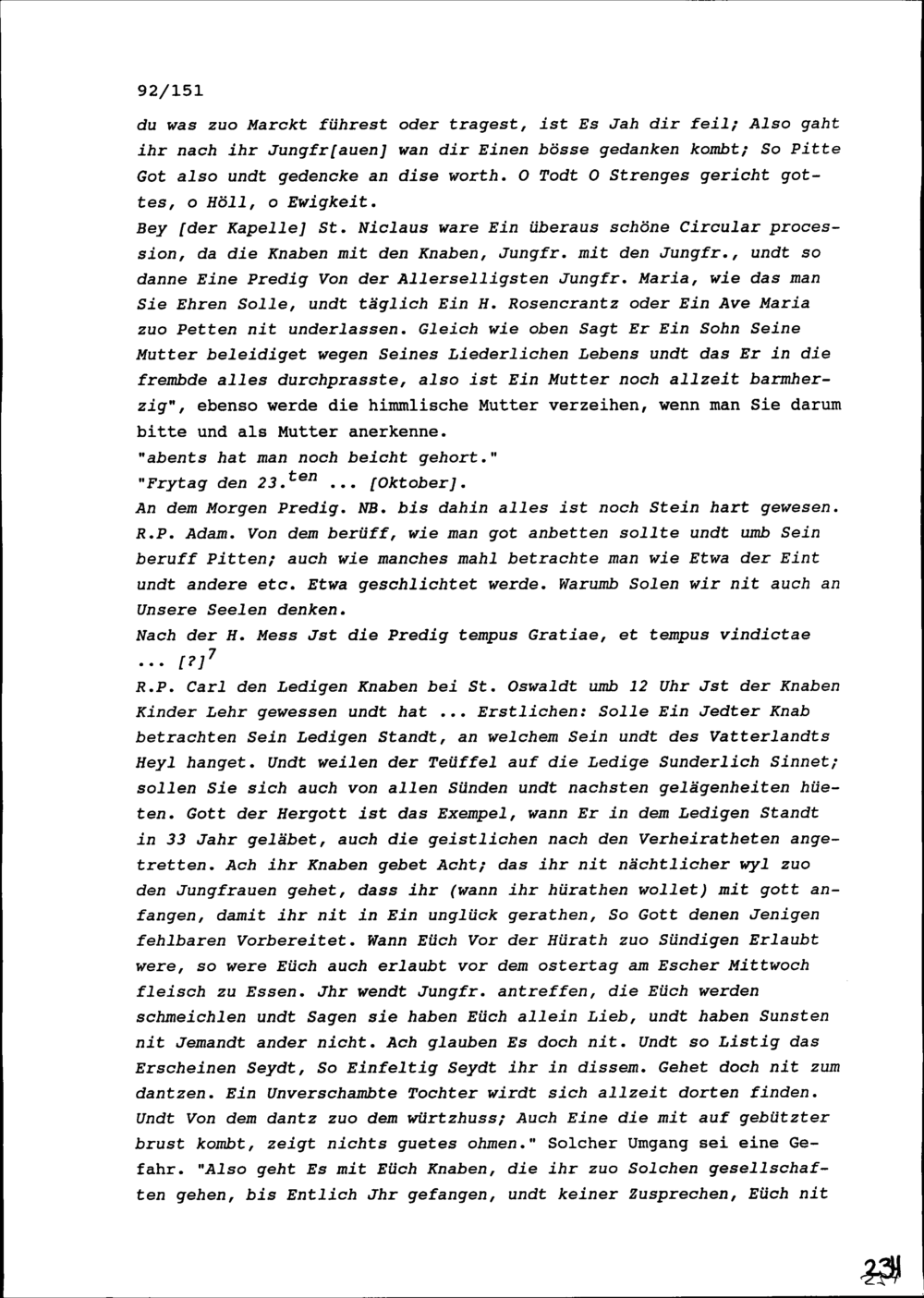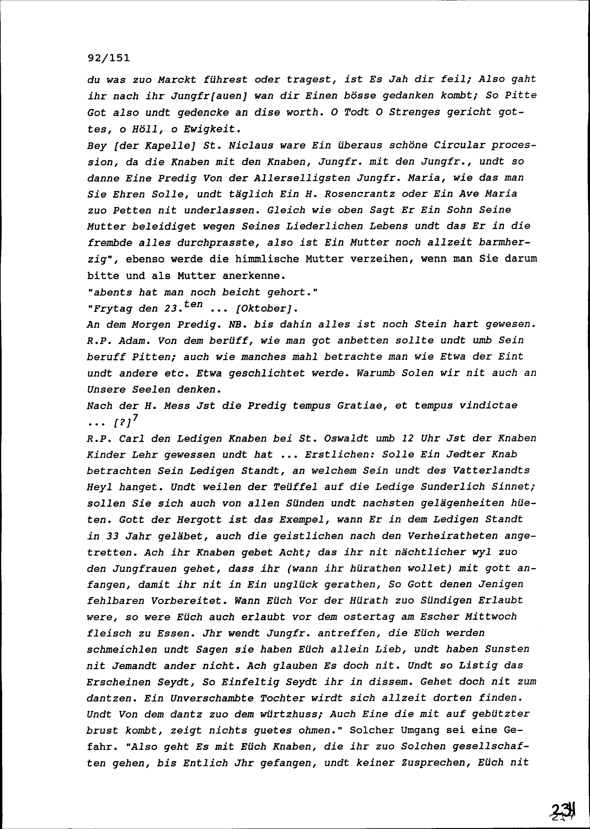 Bericht von Heinrich Damian Leonz Zurlauben über die Volksmission von Dionys Deuber, Charles Maillardoz und Adam Flotto, alle Jesuitenpatres, in der Stadt Zug