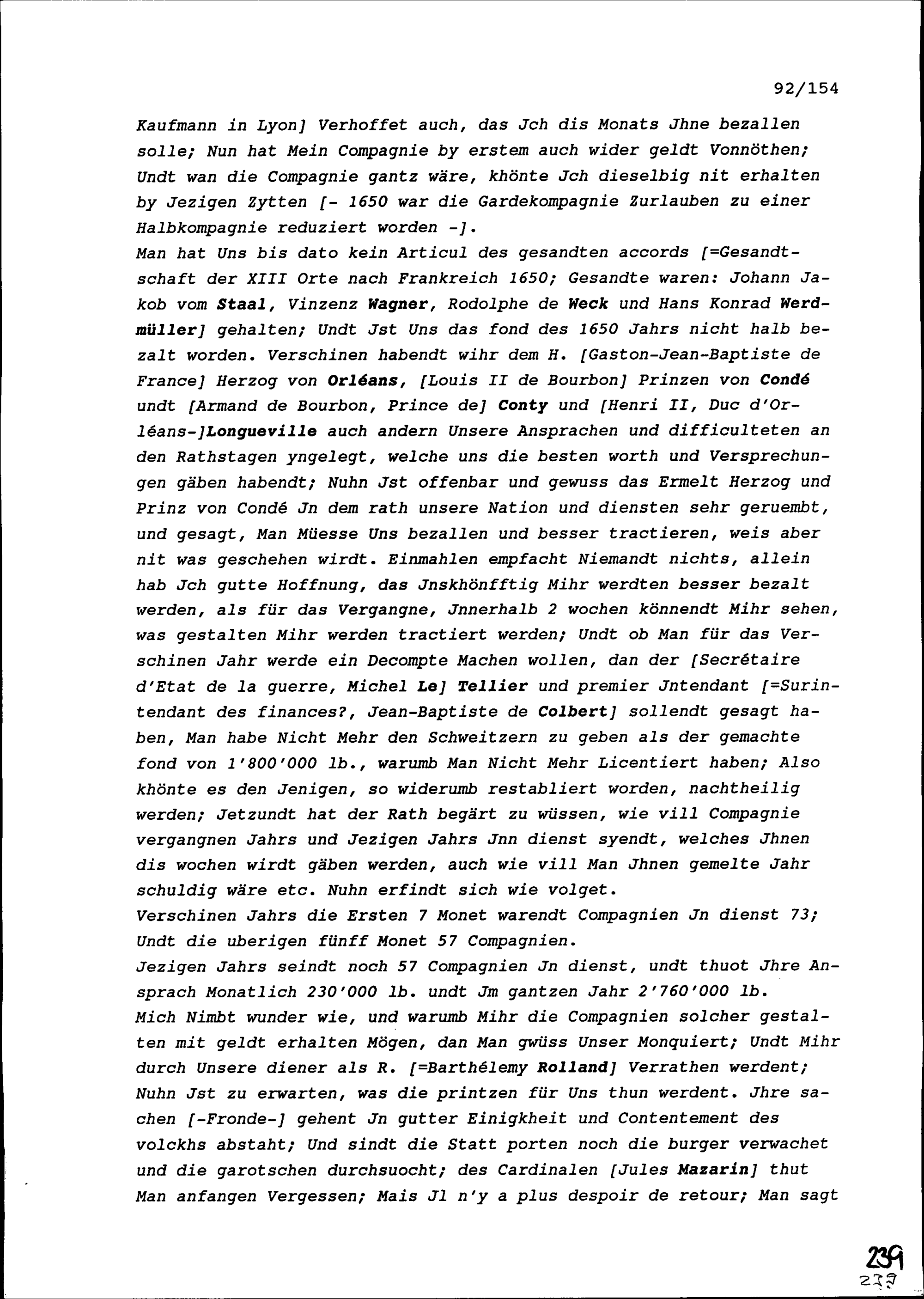 Schreiben von Heinrich II. Zurlauben, Gardehauptmann, an Beat II. Zurlauben, Altammann und Stadt- und Amtrat, Zug