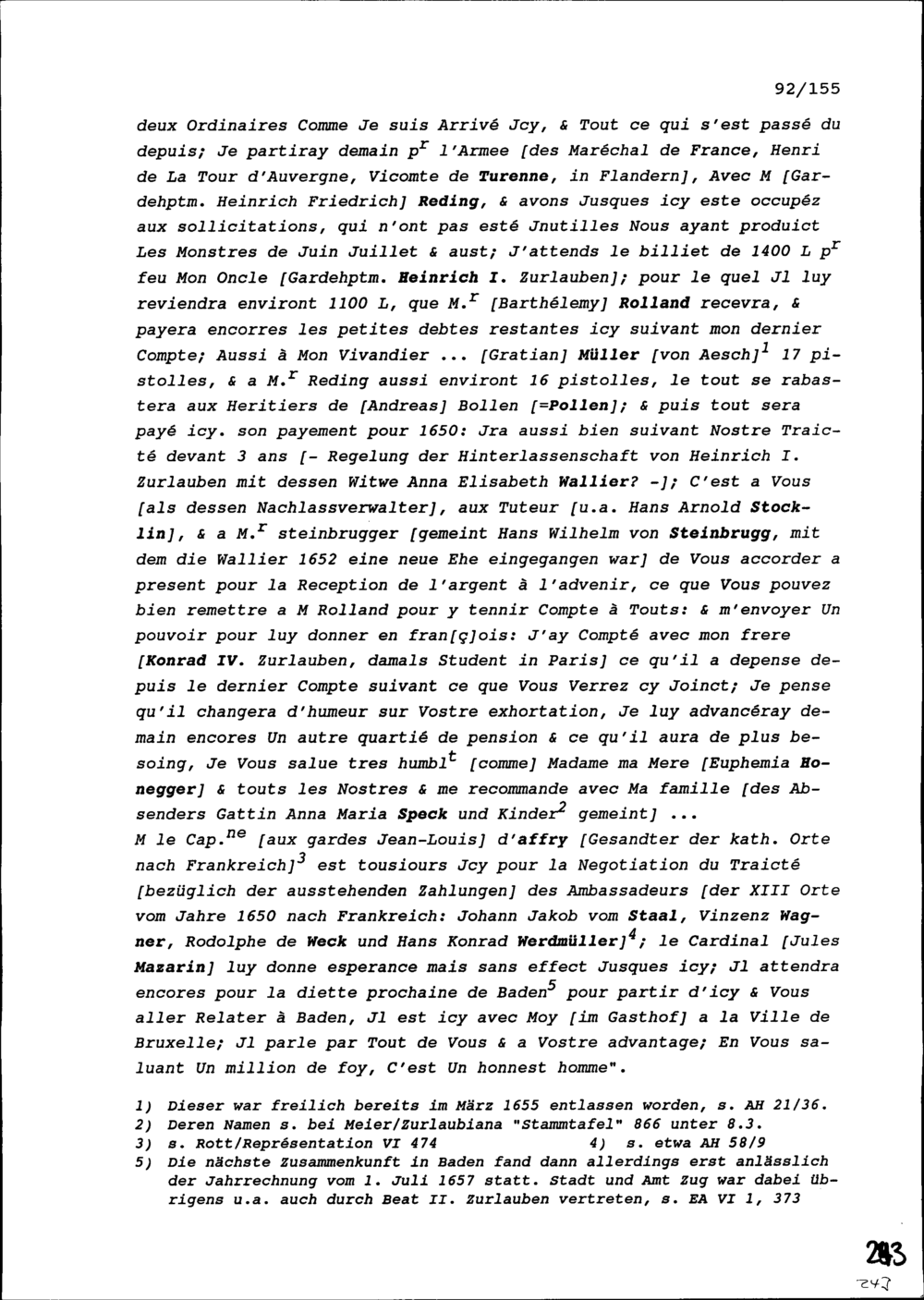 Schreiben von Heinrich II. Zurlauben, Gardehauptmann, an Beat II. Zurlauben, Stadt- und Amtrat Zug