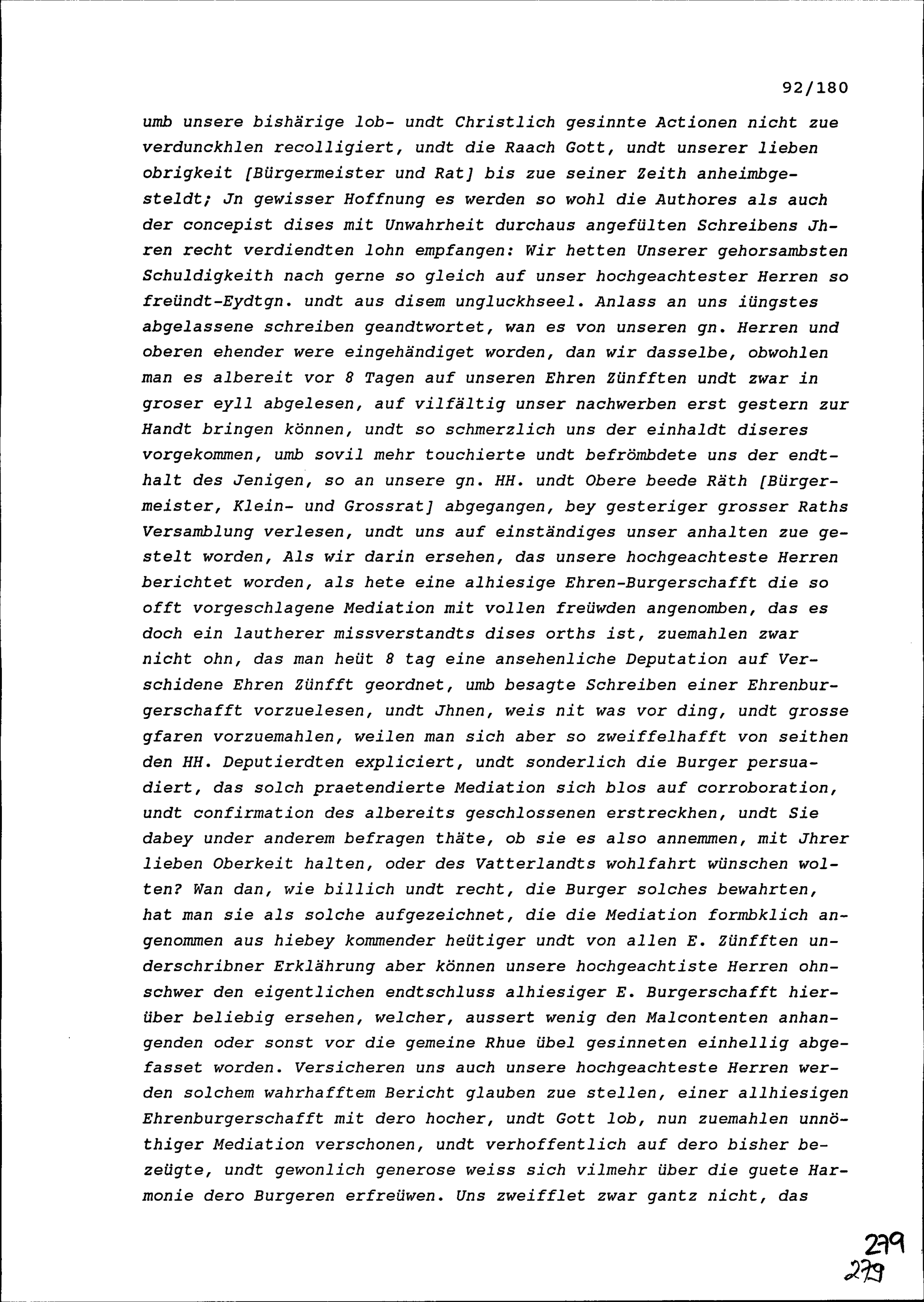 Schreiben der Bürgerschaft der Stadt Basel an die Tagsatzungsgesandten der Zwölf und Zugewandten Orte in Baden