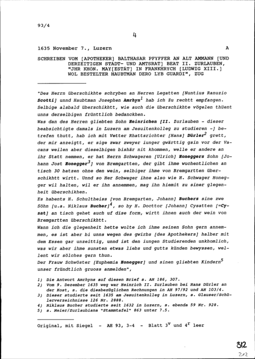 Schreiben von Balthasar Pfyffer, Apotheker, an Beat II. Zurlauben, Altammann und Stadt- und Amtrat, Zug
