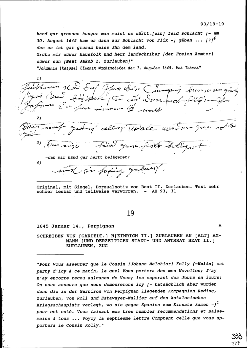 Schreiben von Heinrich II. Zurlauben, Gardeleutnant, an Beat II. Zurlauben, Altammann...
