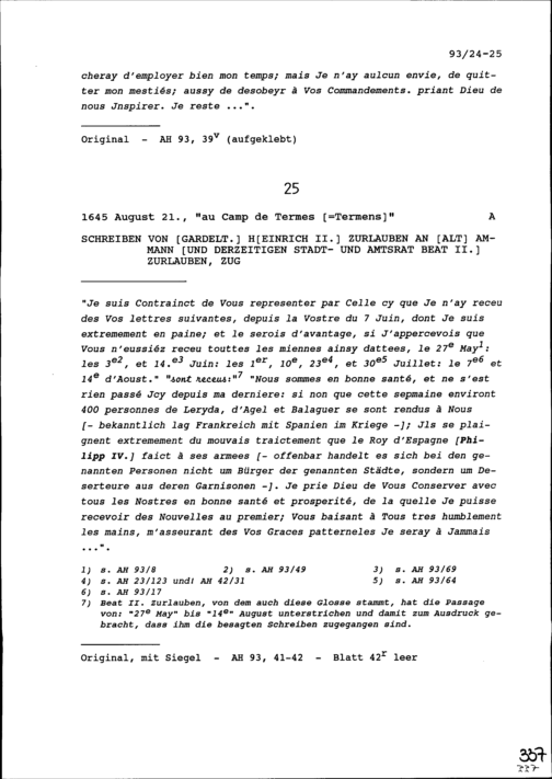 Schreiben von Heinrich II. Zurlauben, Gardeleutnant, an Beat II. Zurlauben, Altammann...