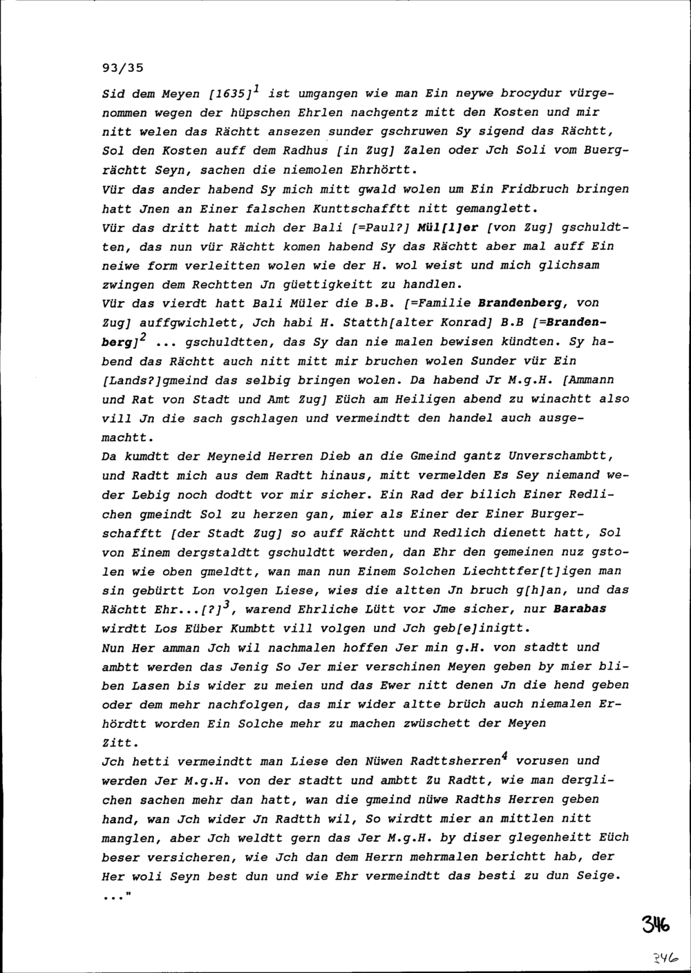 Schreiben von Paulus von Hünenberg, genannt Bengg, an Beat II. Zurlauben, Altammann und Stadt- und Amtrat Zug