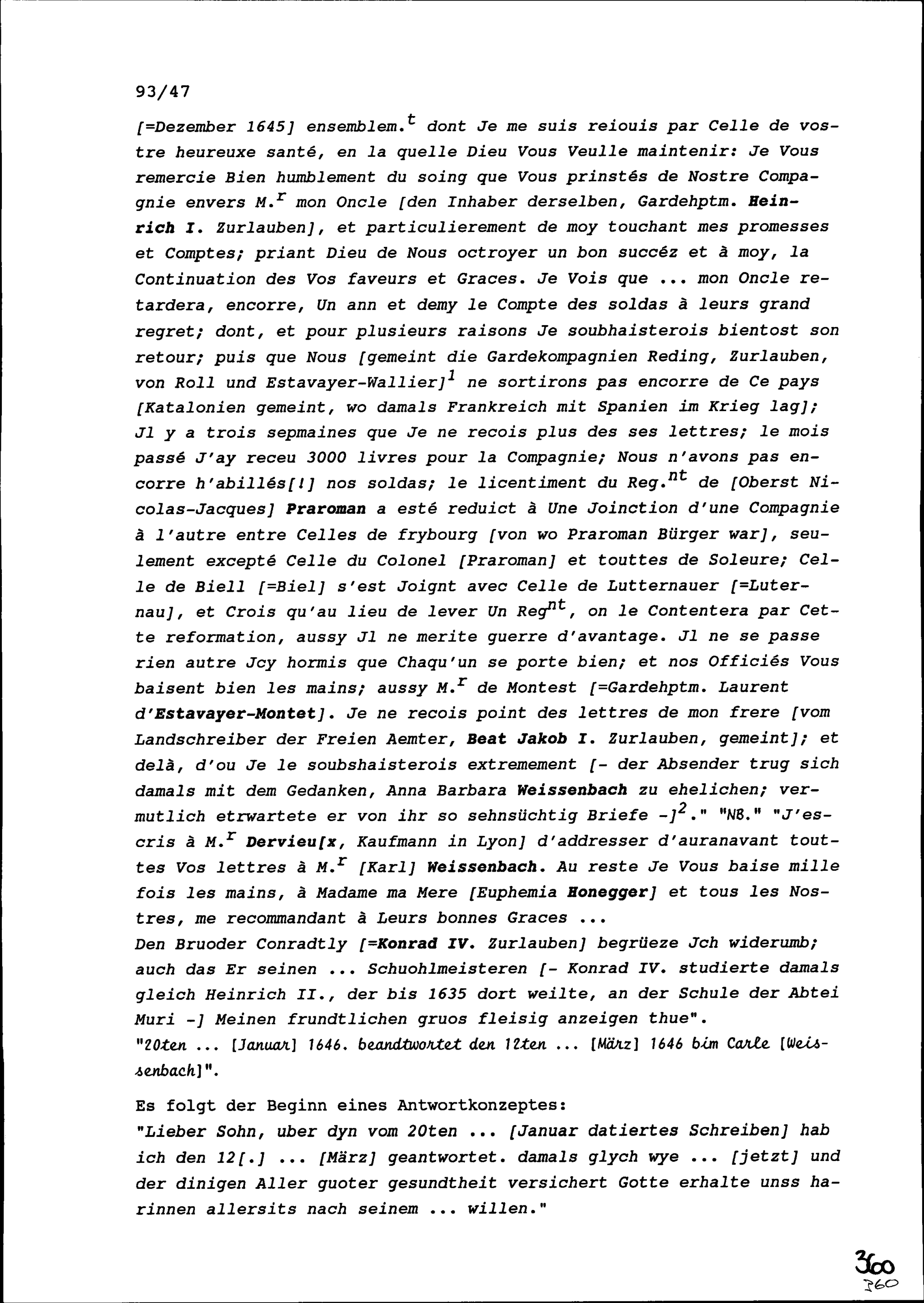 Schreiben von Heinrich II. Zurlauben, Gardeleutnant, an Beat II. Zurlauben, Altammann und Stadt- und Amtrat, Zug