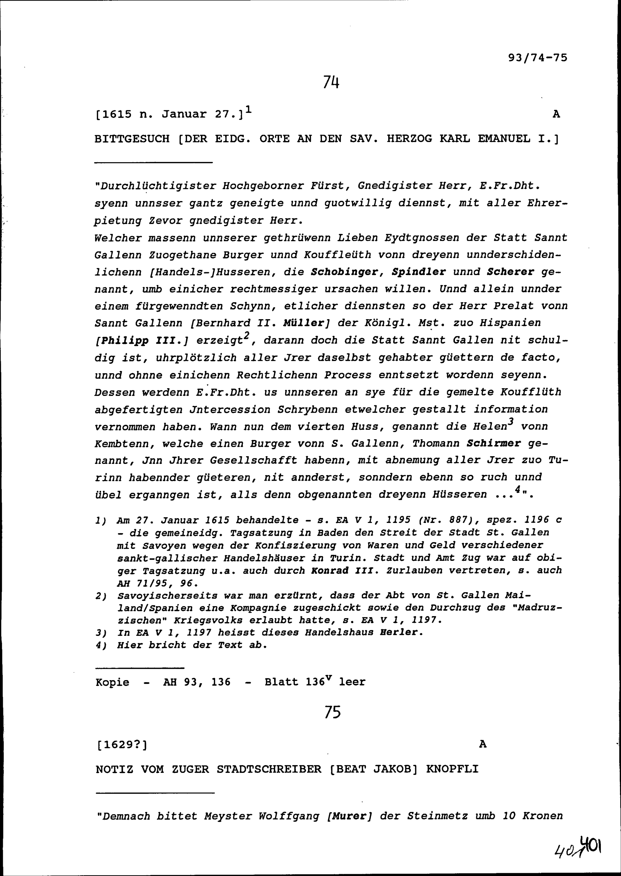 Bittgesuch der Eidgenössischen Orte an Karl Emanuel I., Herzog von Savoyen