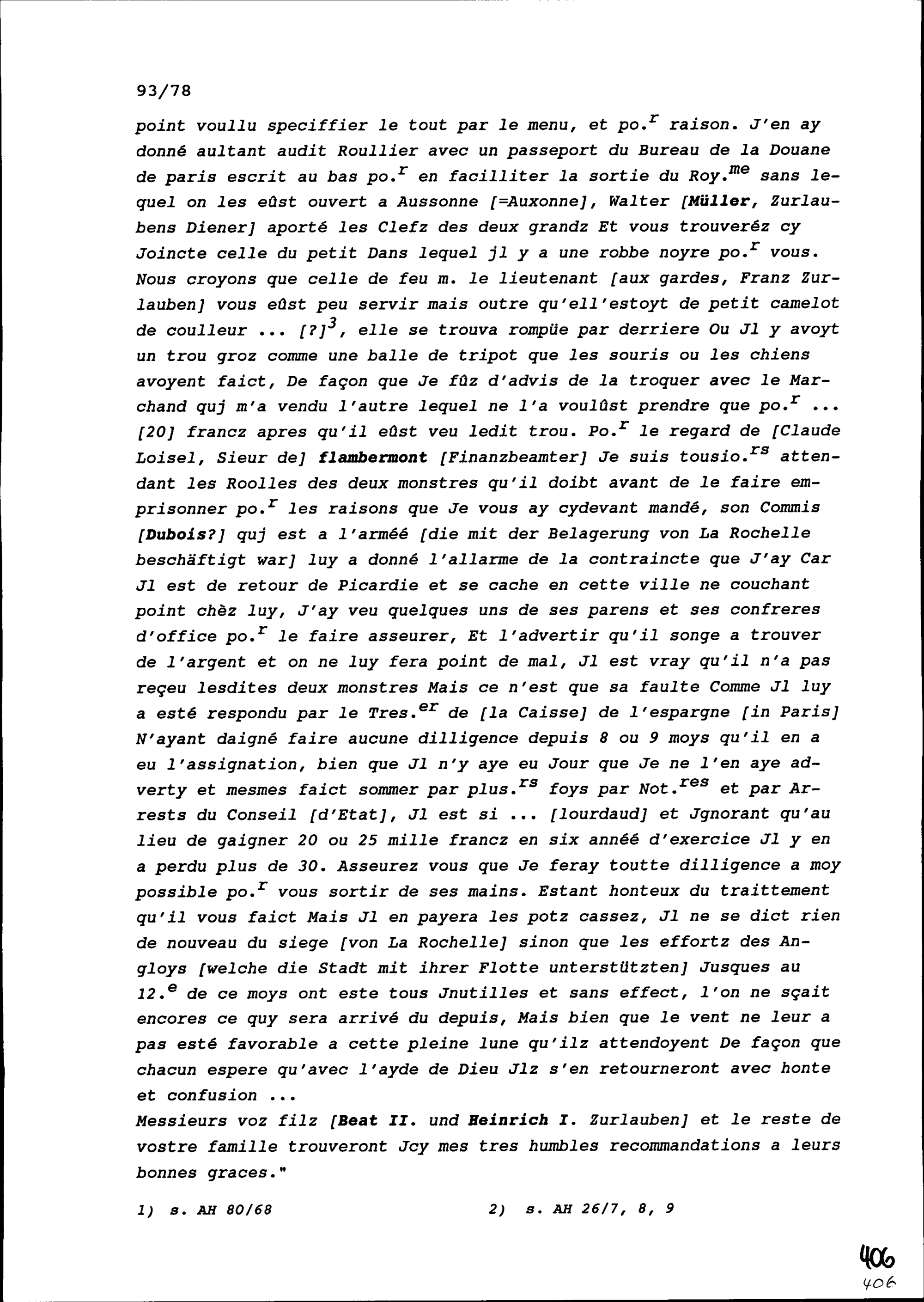 Schreiben von Barthélémy Rolland an Konrad III. Zurlauben, Hauptmann, Altammann und...