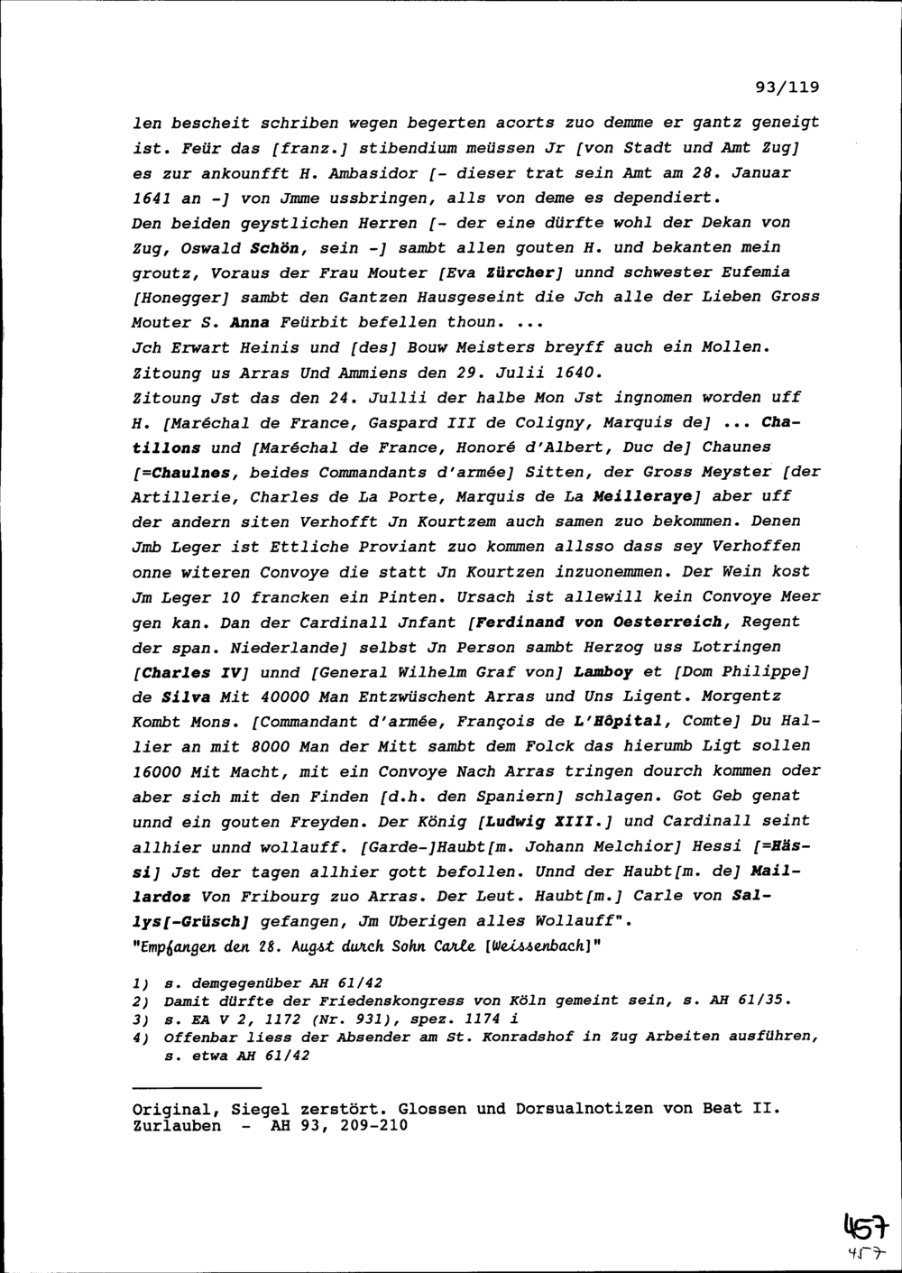 Schreiben von Heinrich I. Zurlauben, Gardehauptmann, an Beat II. Zurlauben, Altammann und Stadt- und Amtrat, Zug