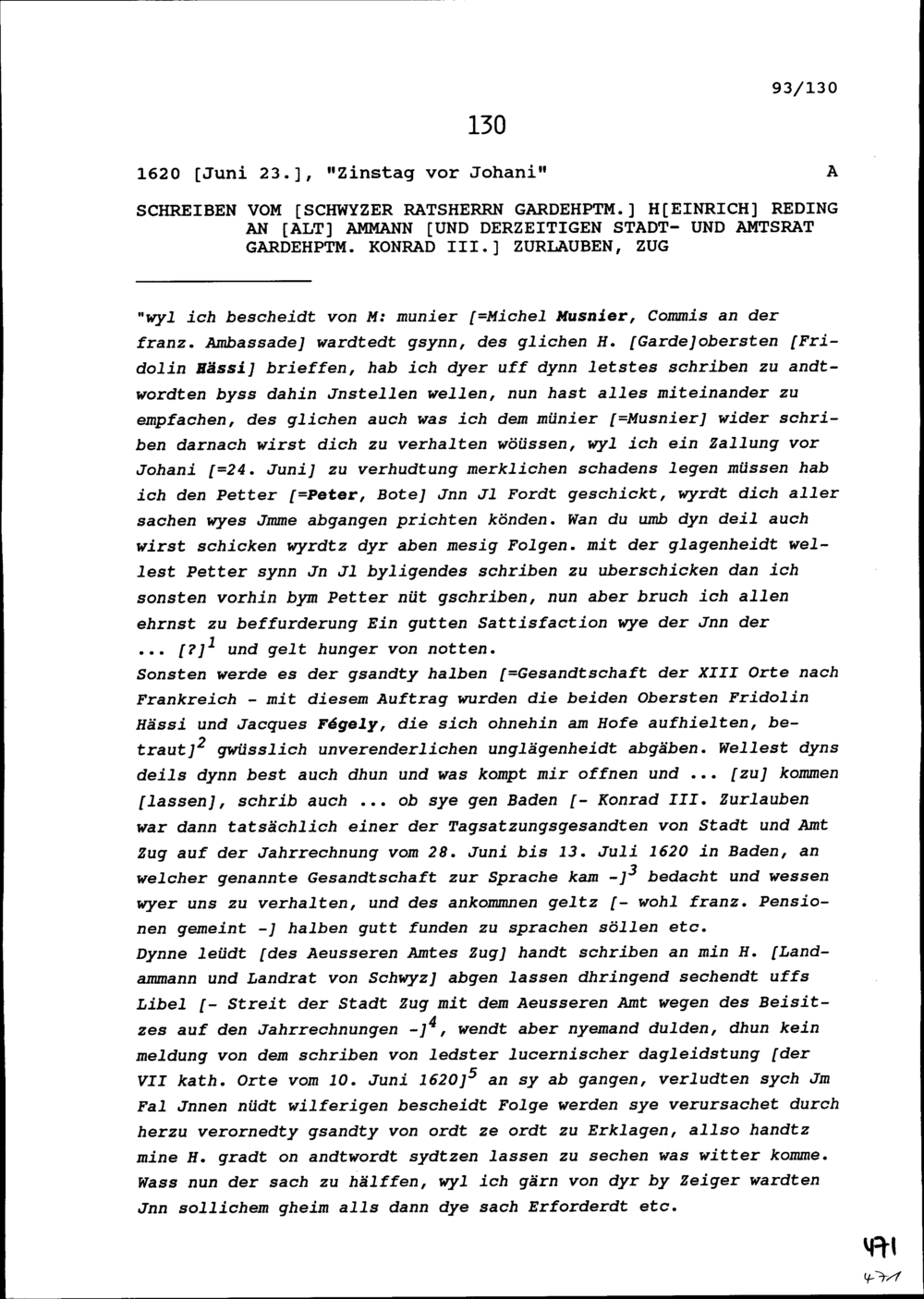 Schreiben von Heinrich Reding, Ratsherr Schwyz und Gardehauptmann, an Konrad III....