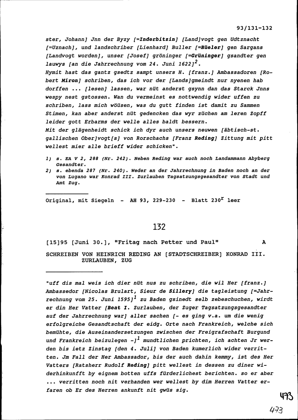 Schreiben von Heinrich Reding an Konrad III. Zurlauben, Stadtschreiber, Zug