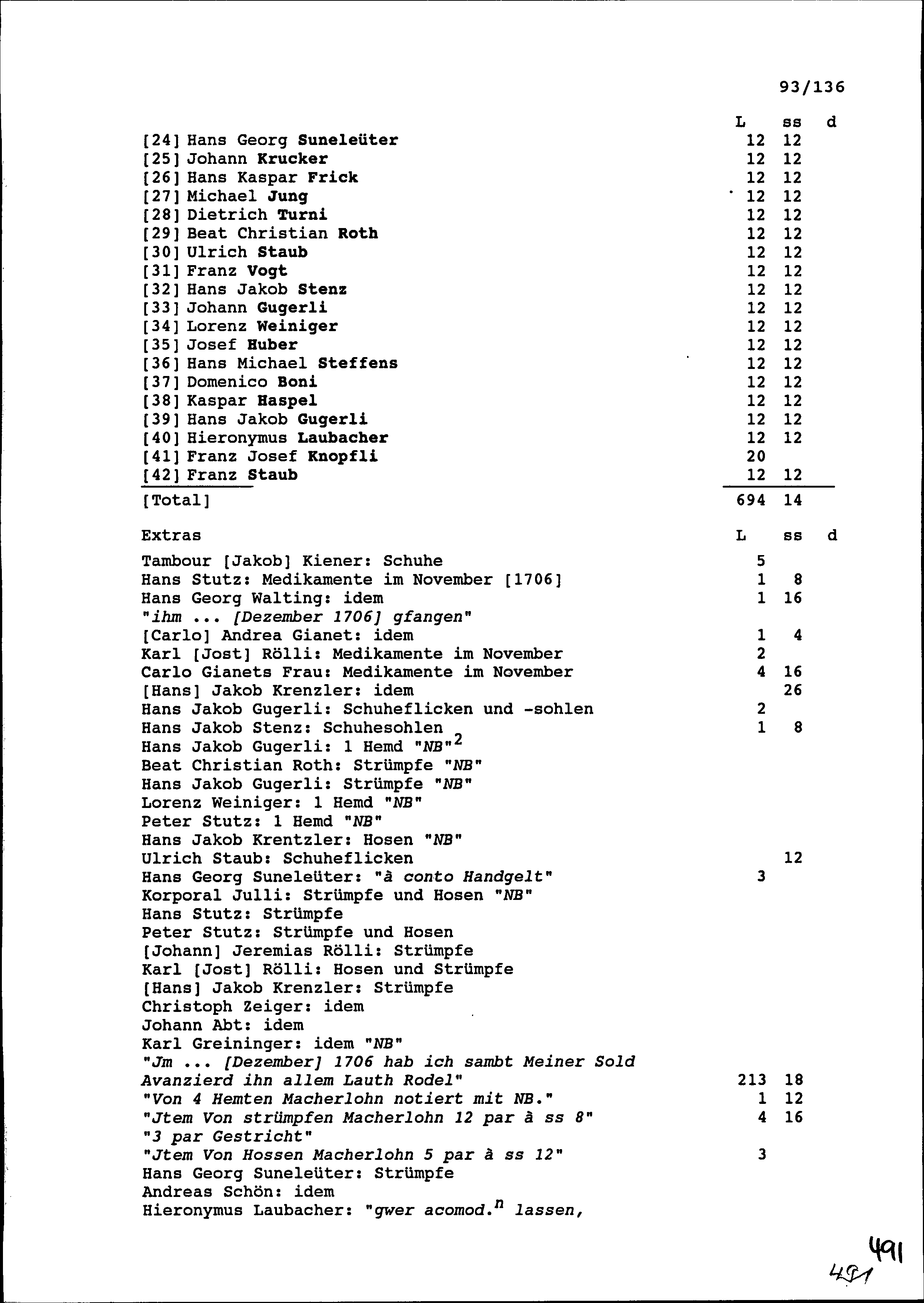 Mannschaftsrodel des in Sabbioneta liegenden Detachements der Kompanie von Beat Jakob II. Zurlauben im Regiment Amrhyn in spanischen Diensten