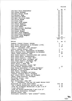 Mannschaftsrodel des in Sabbioneta liegenden Detachements der Kompanie von Beat Jakob...