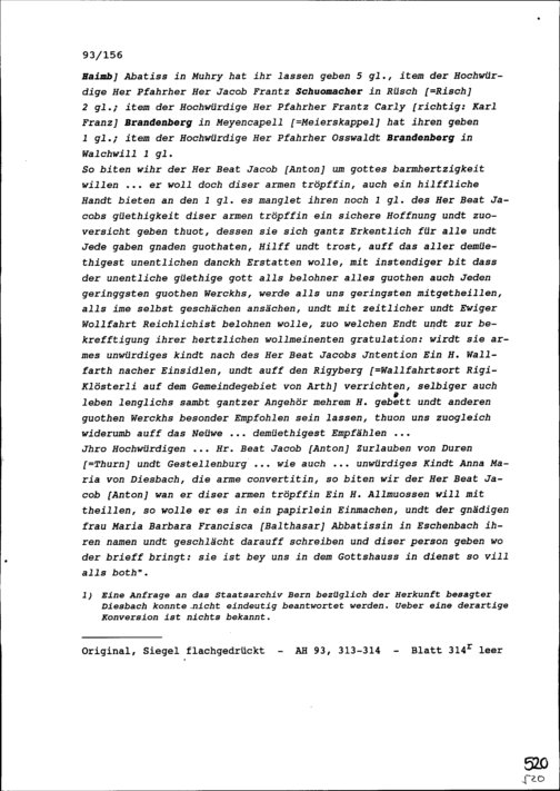 Schreiben von Maria Josefa Waltert, Klosterfrau, an Beat Jakob Anton Zurlauben, Priester, Zug