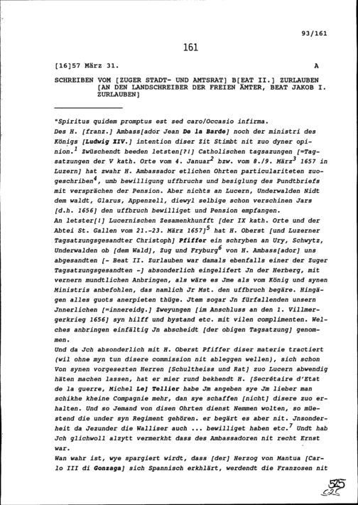Schreiben von Beat II. Zurlauben, Stadt- und Amtrat Zug, an Beat Jakob I. Zurlauben,...