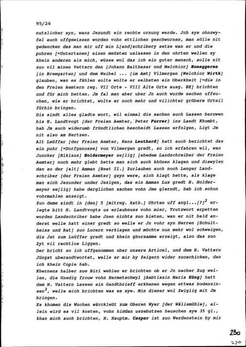 Schreiben von Beat Jakob I. Zurlauben, Landschreiber der Freien Ämter, an Beat II....